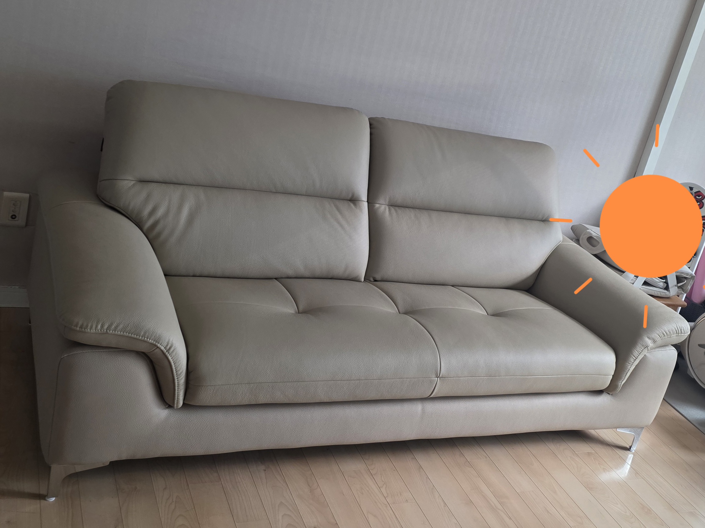 이미지 더보기쿠시 플러스 3인 천연면피 소가죽 소파