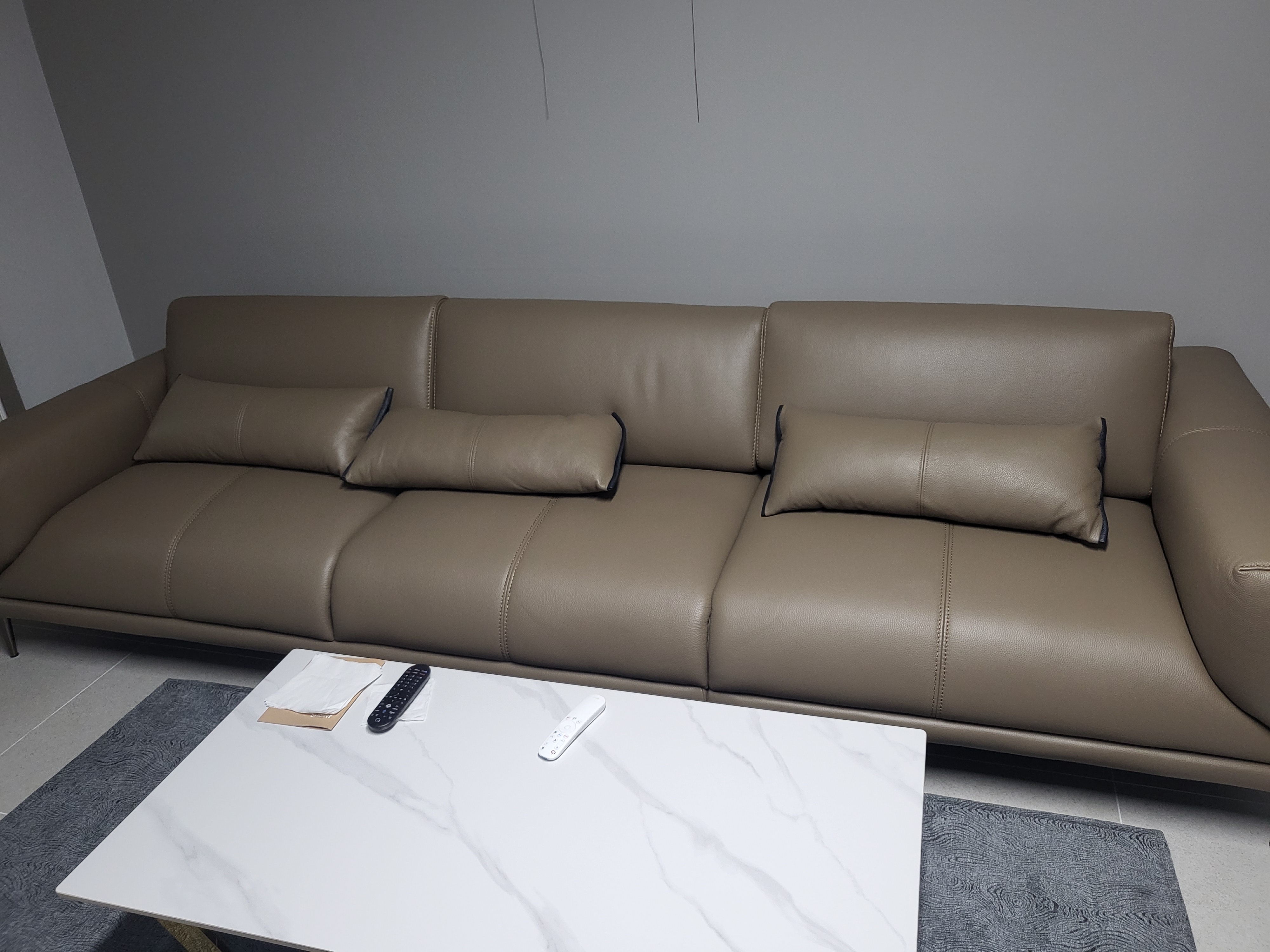 페레티 4인 기능성 슈렁큰 천연면피 소가죽 소파+쿠션3개