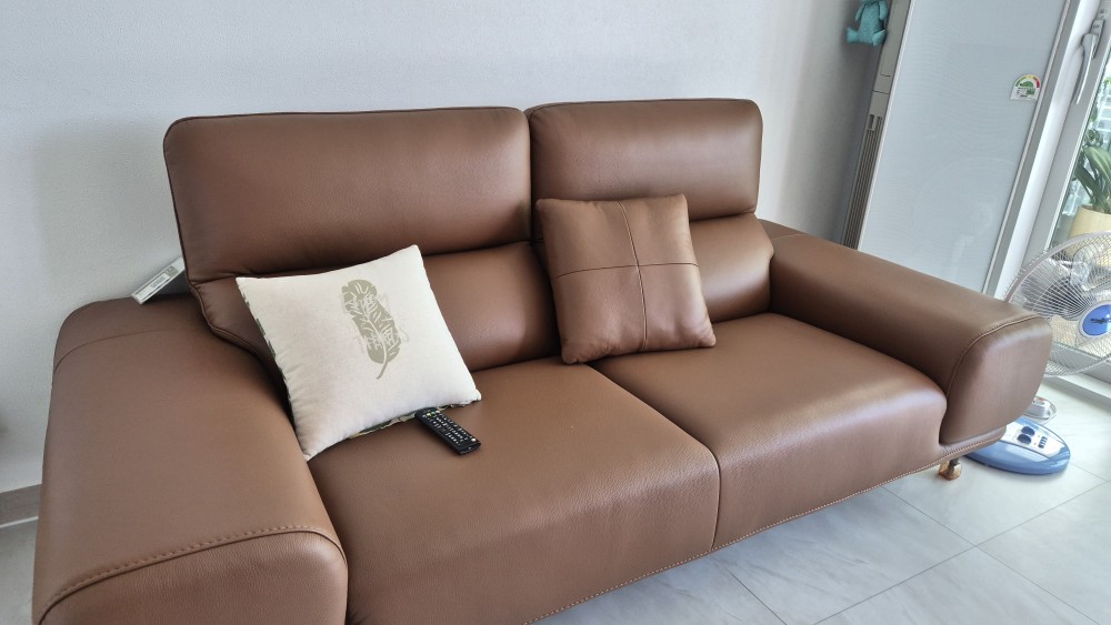 이미지 더보기로만 4인 슈렁큰 천연면피 소가죽 소파(전면가죽적용)+쿠션2개