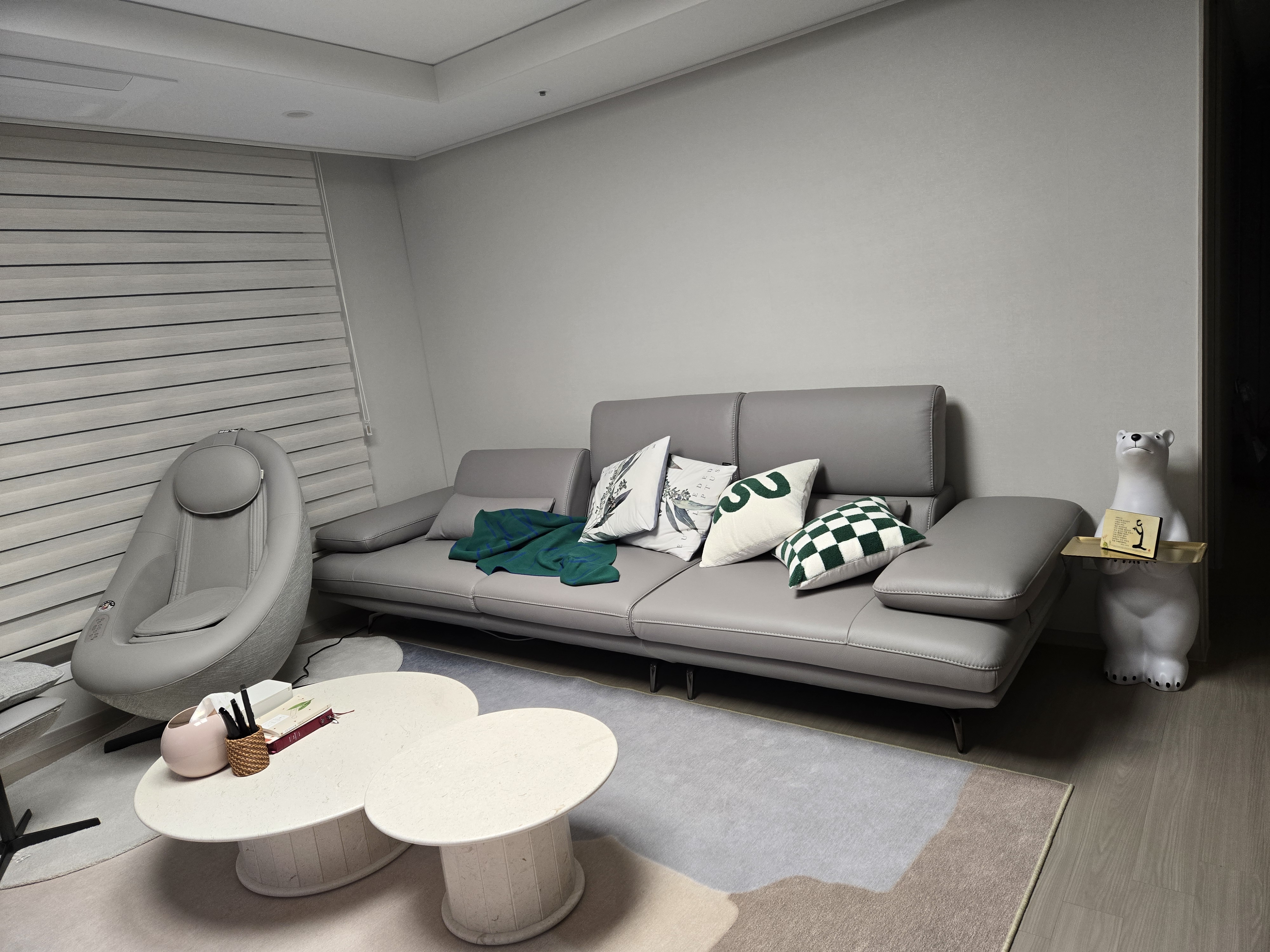 - 제품 설치 완료 후, 천연가죽 고유 특성(부위별 색상, 엠보, 결의 불일치, 초기 냄새 등) or 패브릭 본연의 특성 (색상, 결의 불일치, 초기 냄새 등) 혹은 제품에 사용된 자재 본연의 특성 등을 이유로 교환 및 반품을 요청하는 경우