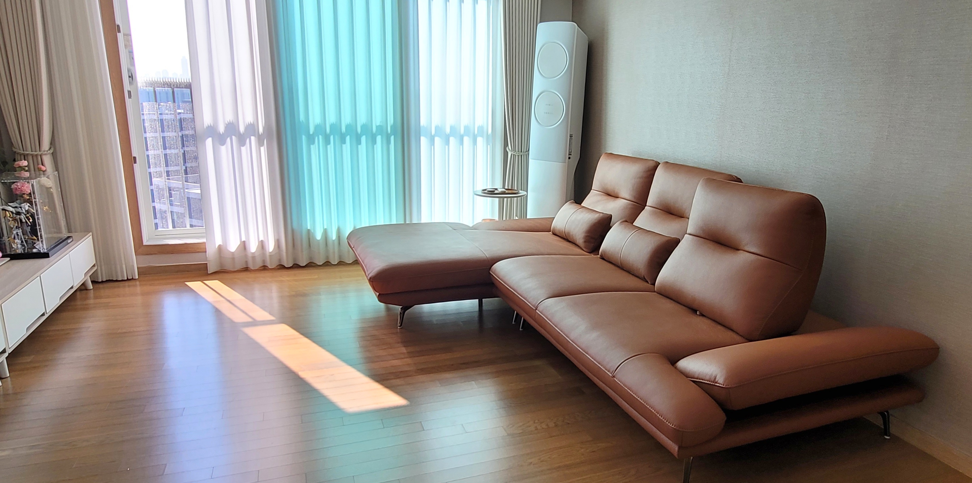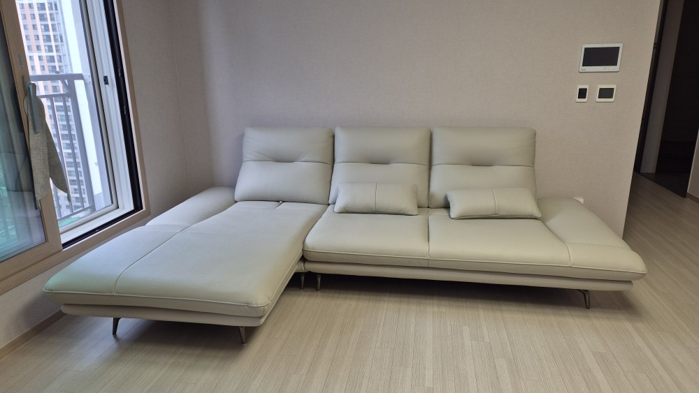 이미지 더보기컴포트 발렌티 스윙 4인 카우치형 기능성 럭스 통가죽 천연면피 소가죽 소파+쿠션2개