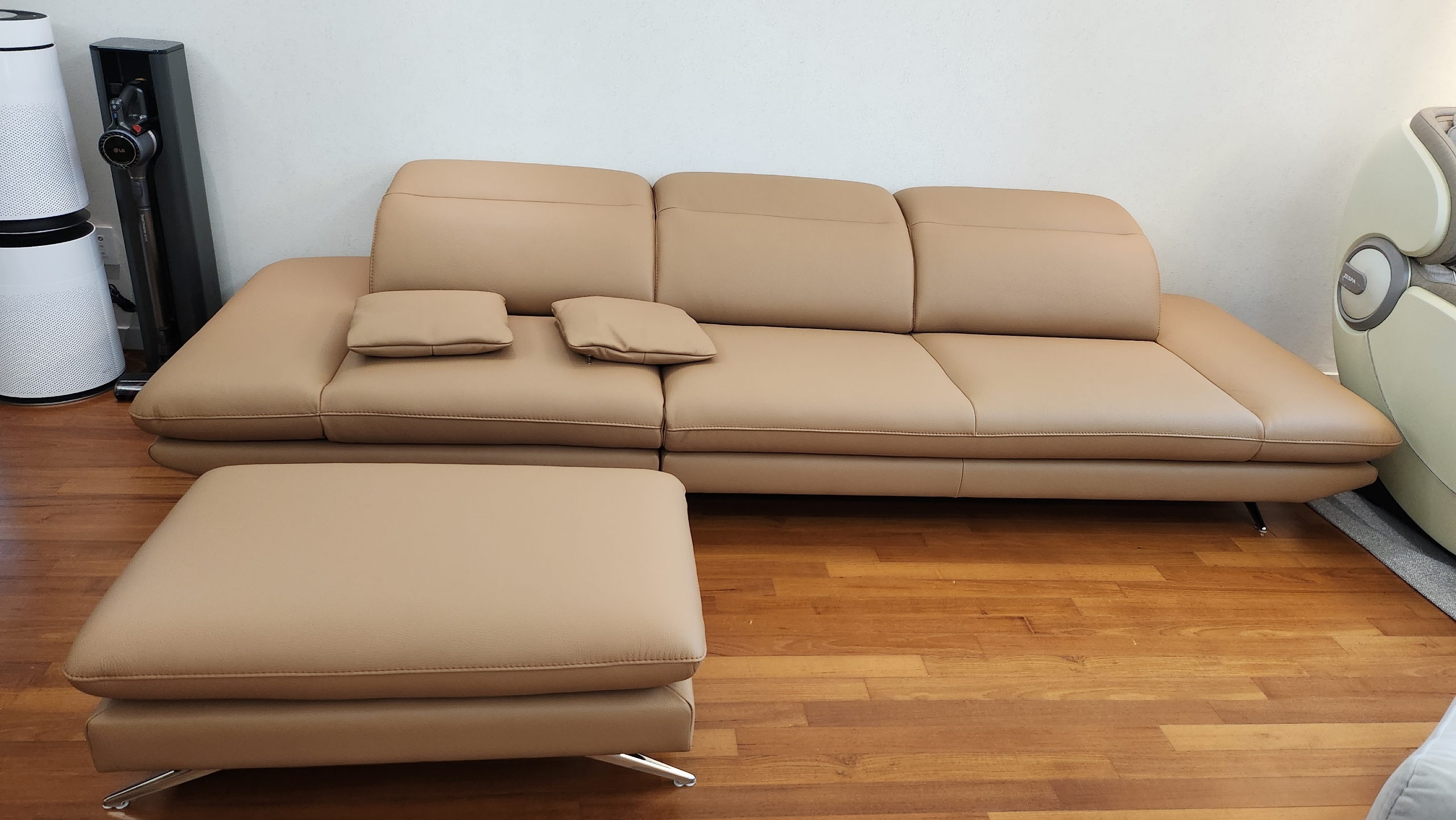 [CURATION 15%] 아빌라 4인 기능성 럭스 통가죽 천연면피 소가죽 소파(전측면가죽적용)+쿠션2개