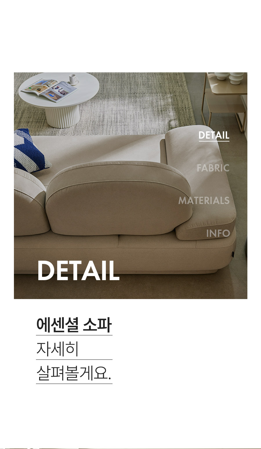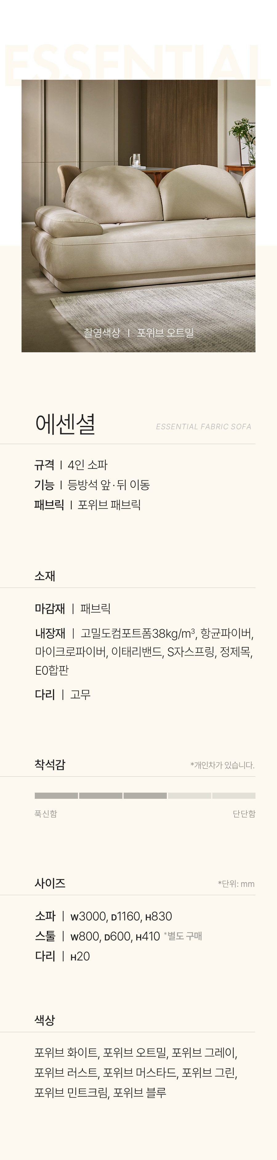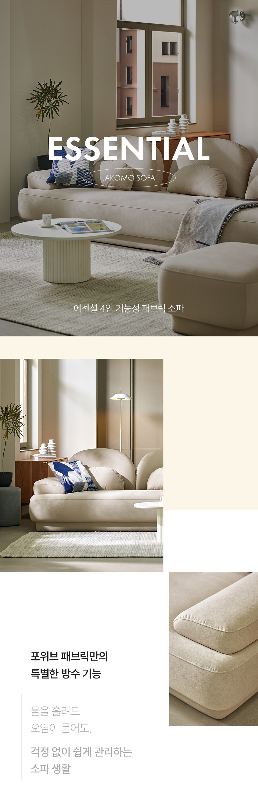[Monthly Best 10%] 에센셜 스윙 4인 기능성 포위브 패브릭 소파+쿠션3개 2,550,000원 / 배송비 : 무료