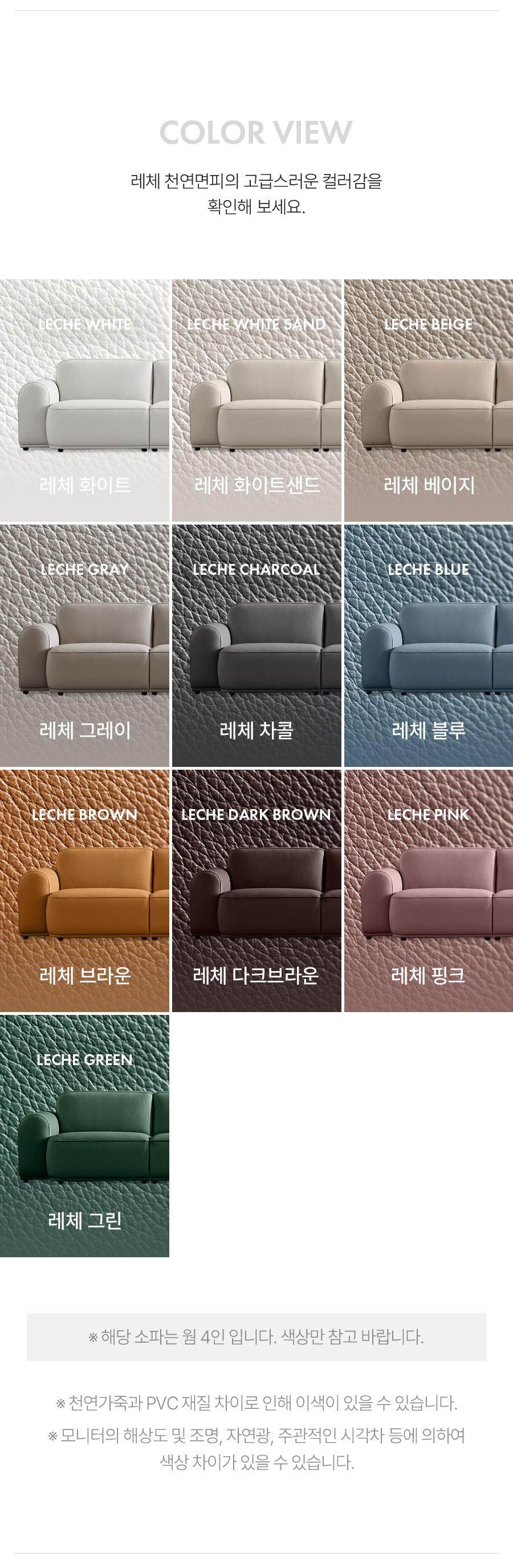 - 색상이나 카우치방향 등의 변경은 주문 후 2일 이내에 가능합니다.
