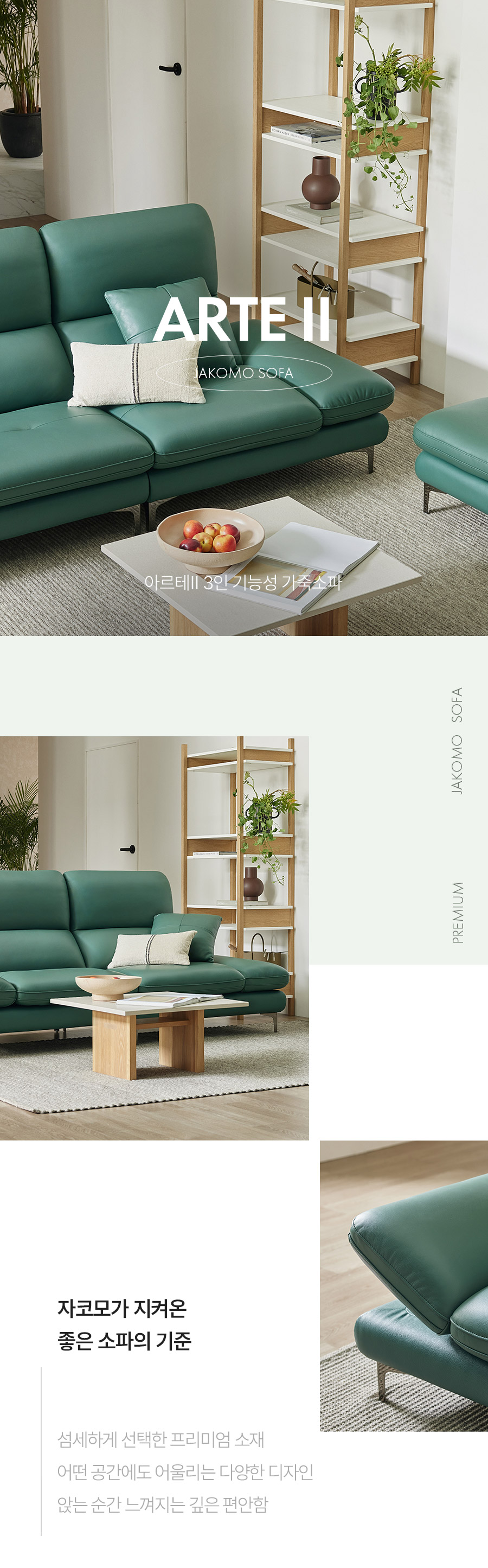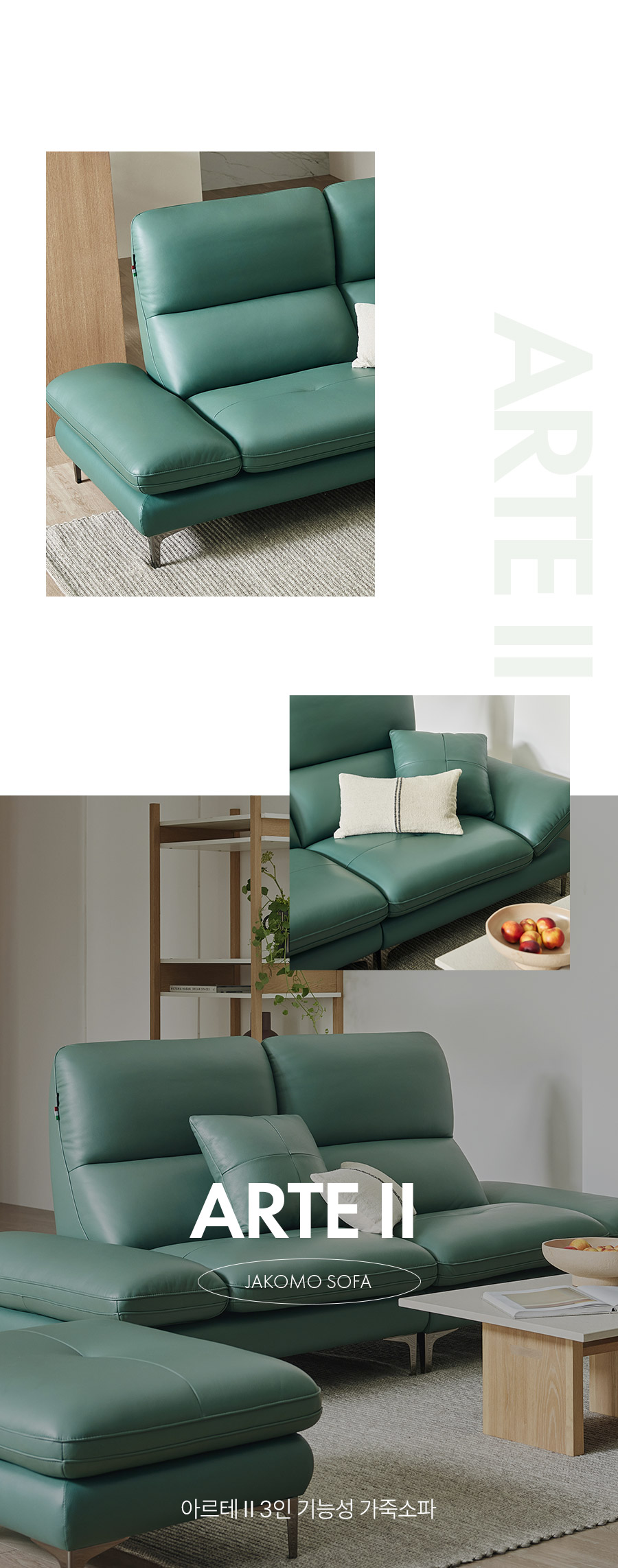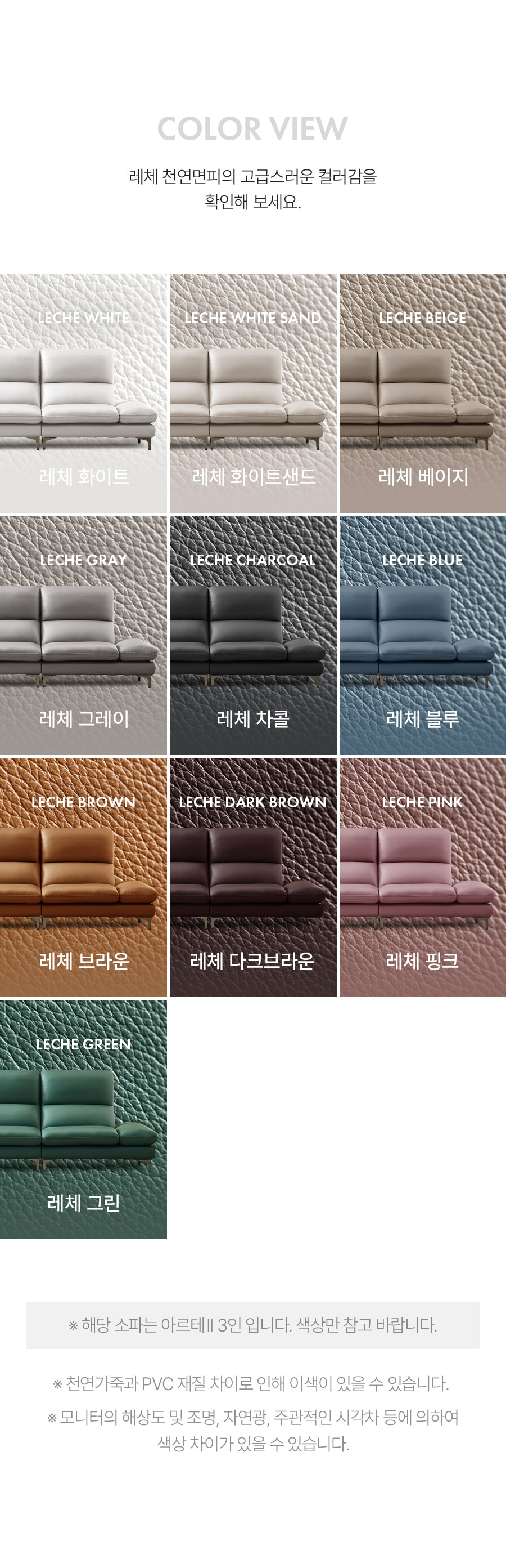 아르테II 3인 기능성 레체 이태리 천연면피 소가죽 소파(전면가죽적용)+쿠션1개