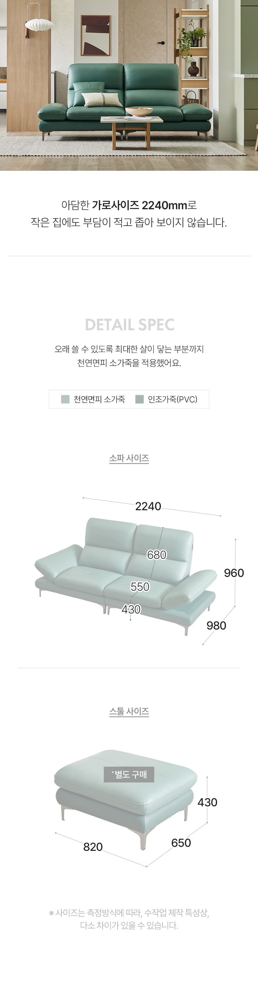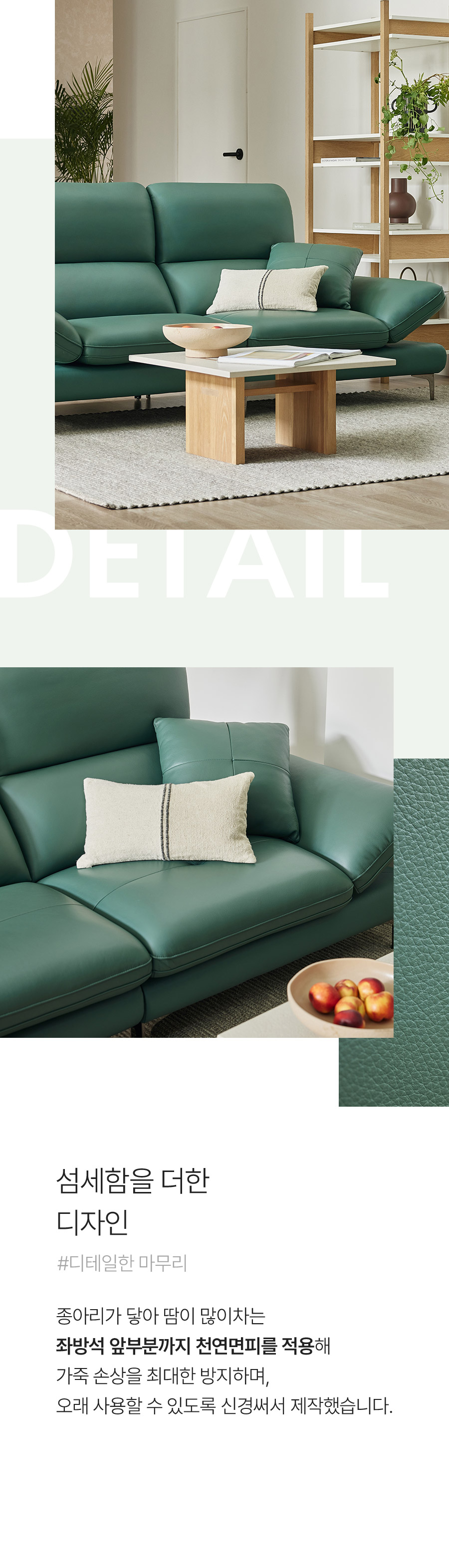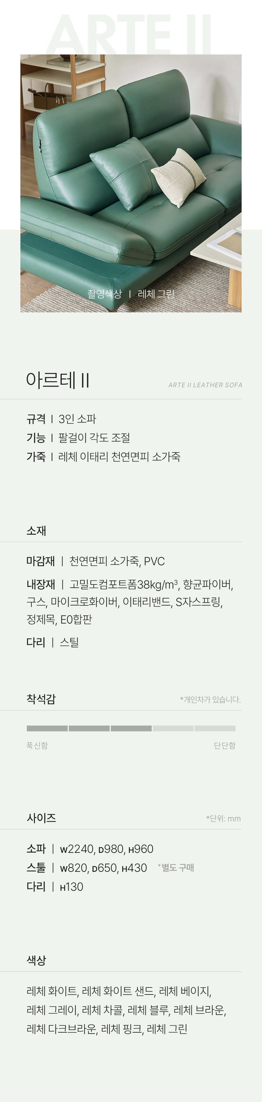 아르테II 3인 기능성 레체 이태리 천연면피 소가죽 소파(전면가죽적용)+쿠션1개
