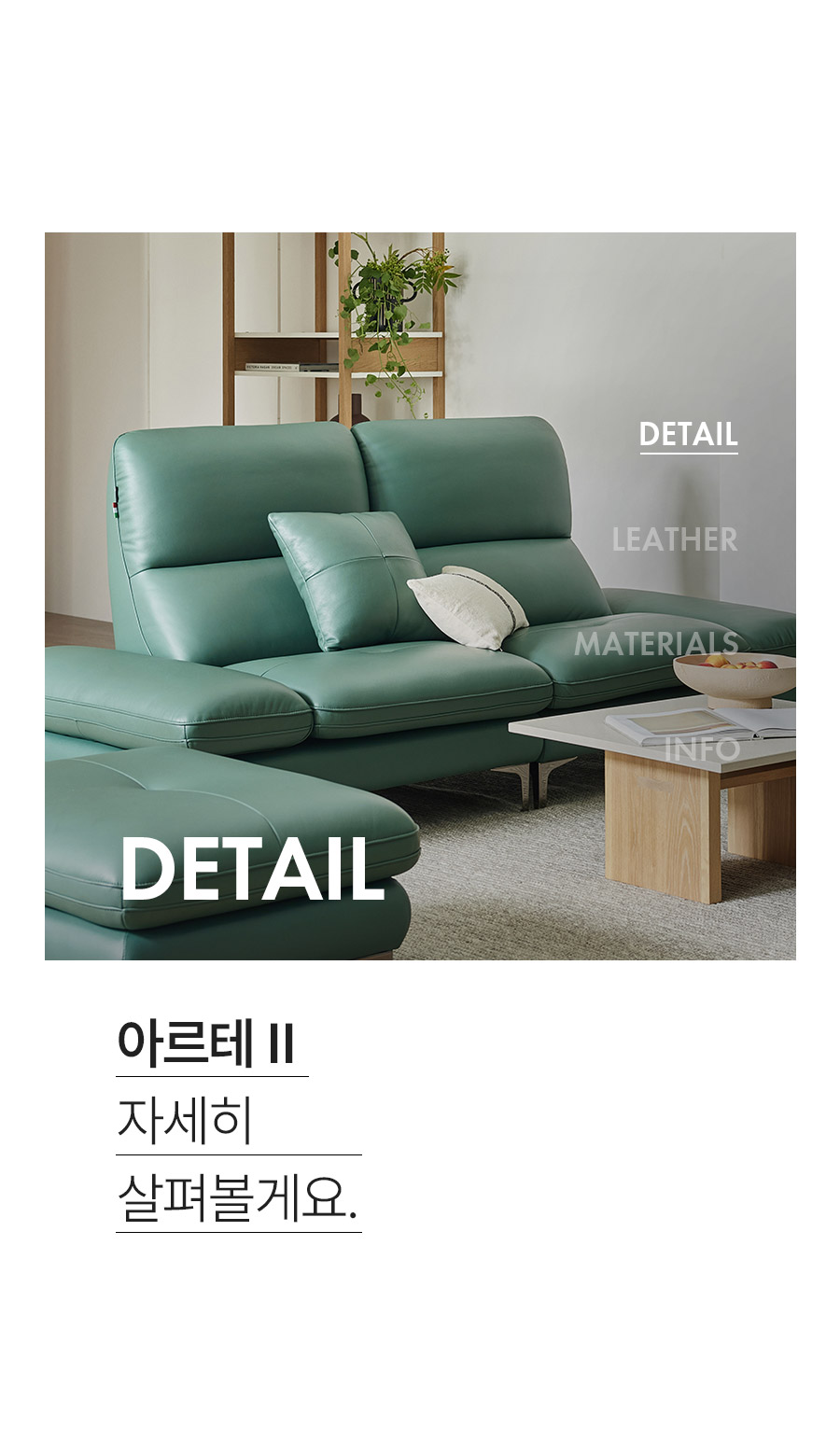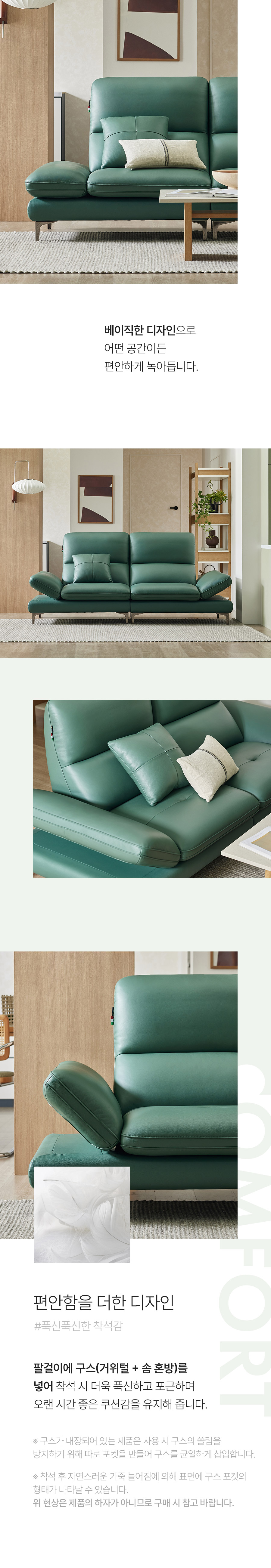 • 아르테II 3인 기능성 레체 이태리 천연면피 소가죽 소파(전면가죽적용)+쿠션1개