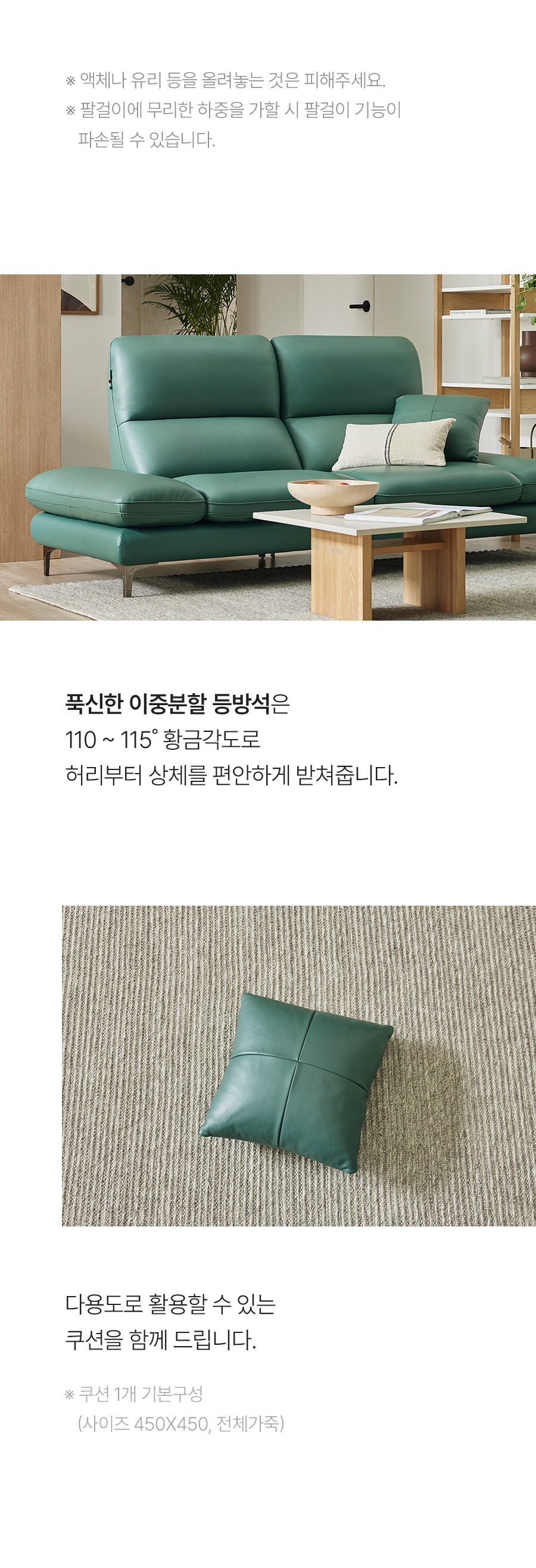 - 소파 등부위 상단부나 팔걸이 위에 올라서지 않도록 주의하여 주십시오. (제품손상의 원인)