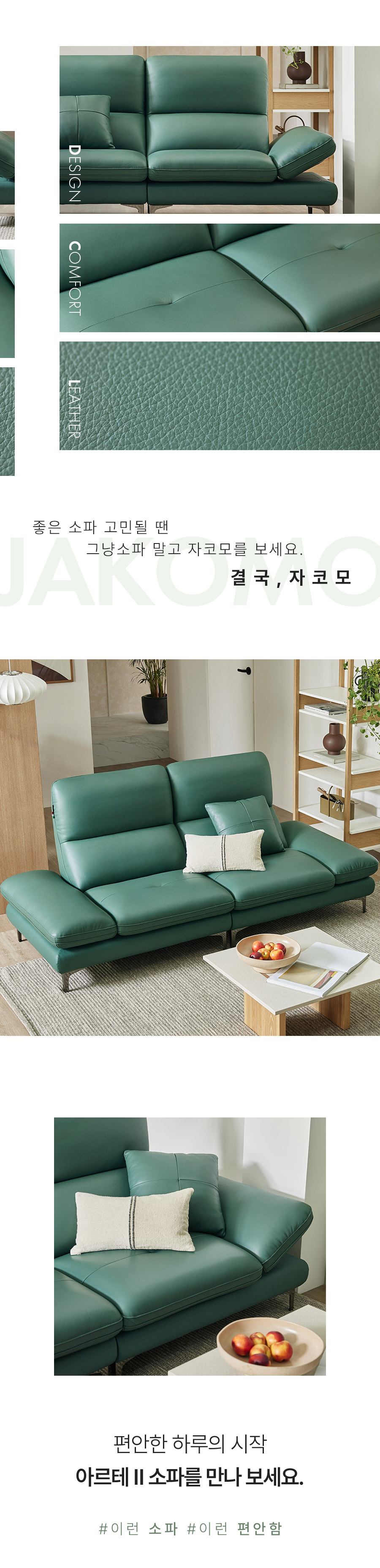 아르테II 3인 기능성 레체 이태리 천연면피 소가죽 소파(전면가죽적용)+쿠션1개 2,300,000원 / 배송비 : 무료