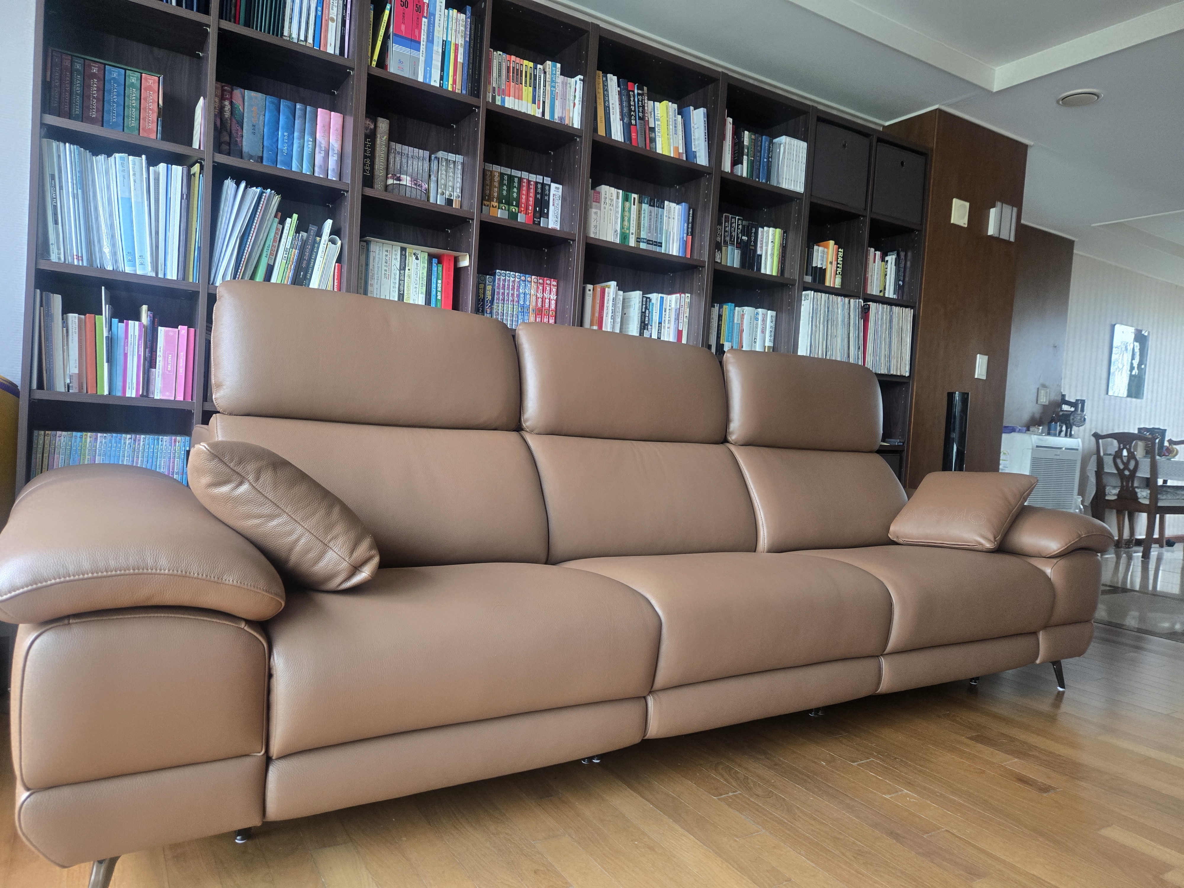 이미지 더보기엘로니 3모터 리클라이너 4인 슈렁큰 천연면피 소가죽 소파(전측면가죽적용)