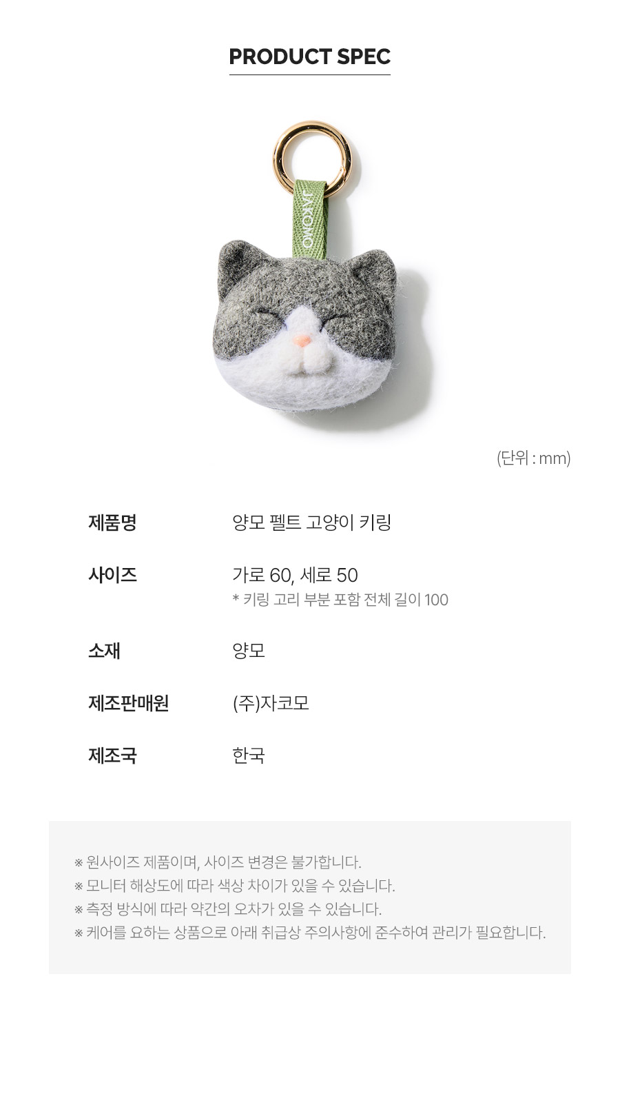 (김설아X자코모) 양모 펠트 고양이 키링 45,000원 / 배송비 : 무료