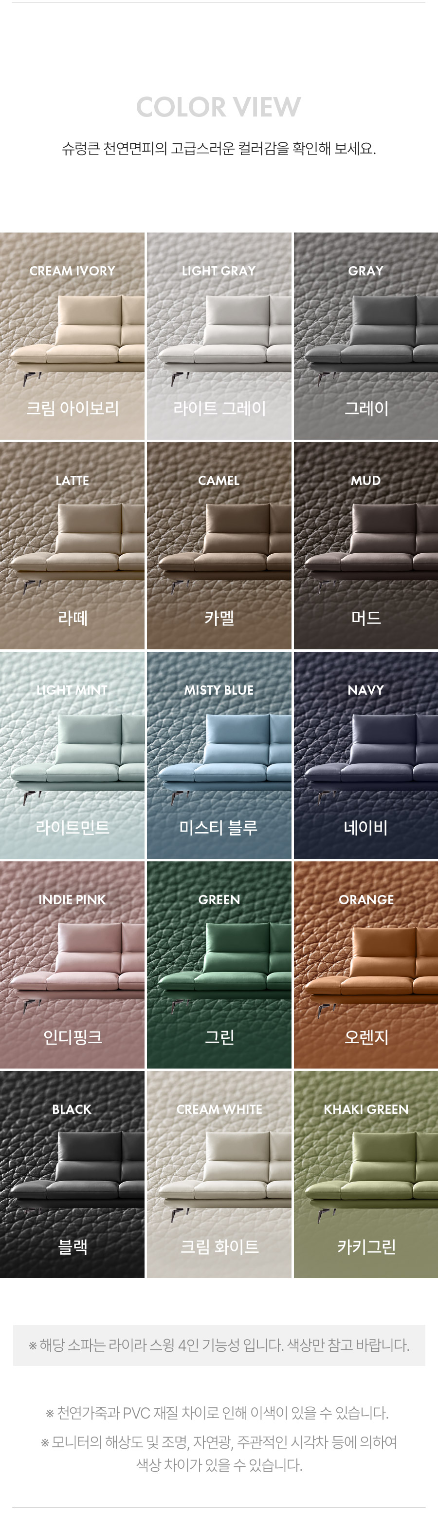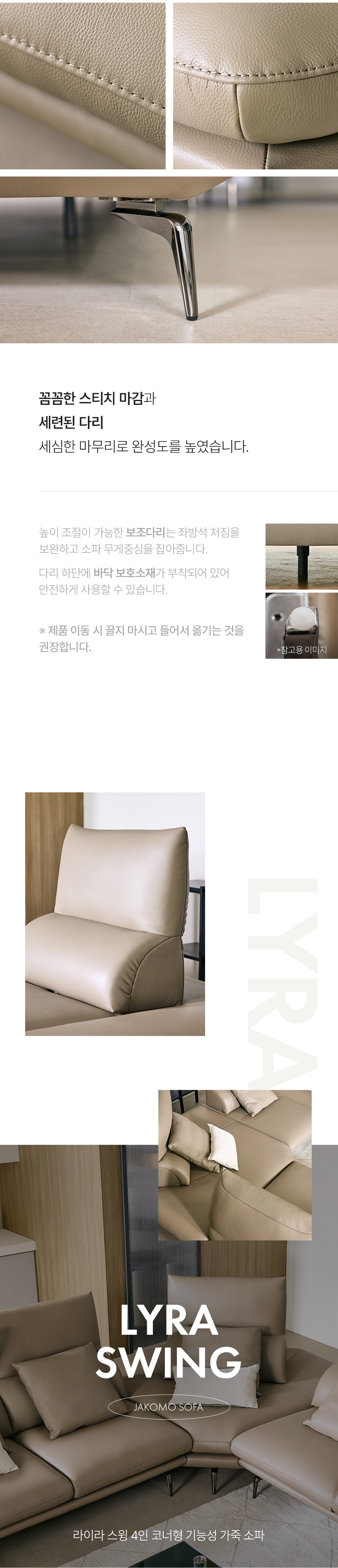 라이라 스윙 4인 코너형 기능성 슈렁큰 천연면피 소가죽 소파(전측면가죽적용)+쿠션4개