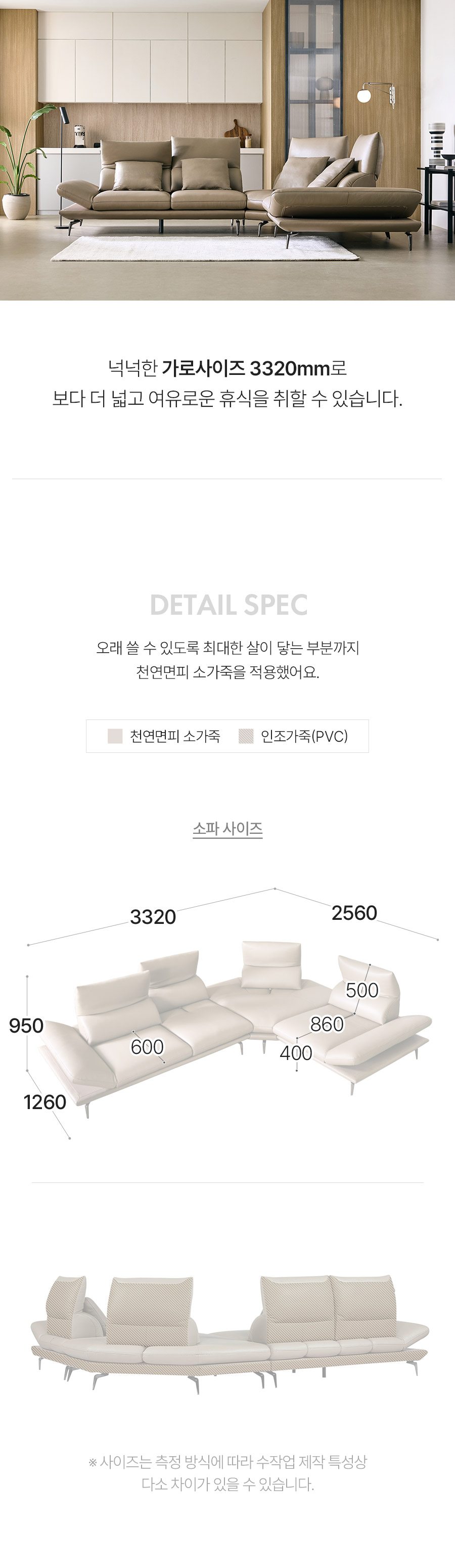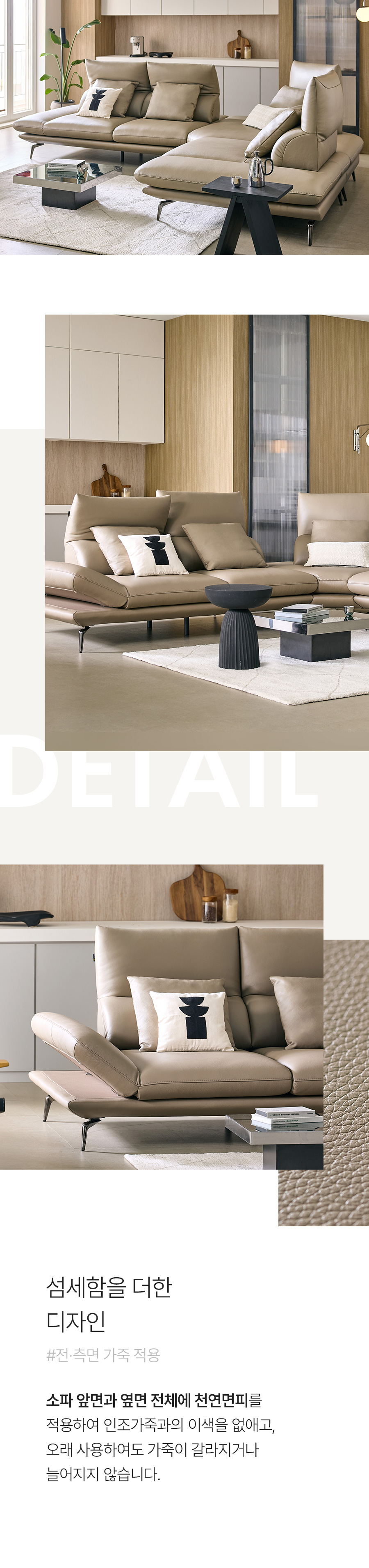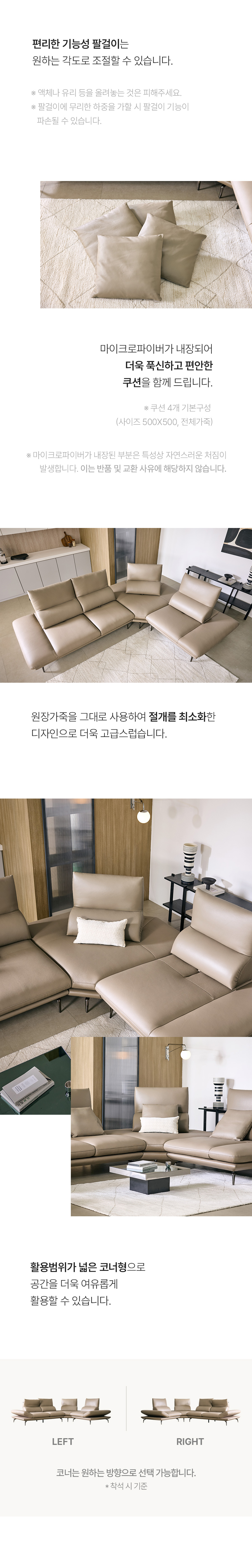 • 라이라 스윙 4인 코너형 기능성 슈렁큰 천연면피 소가죽 소파(전측면가죽적용)+쿠션4개