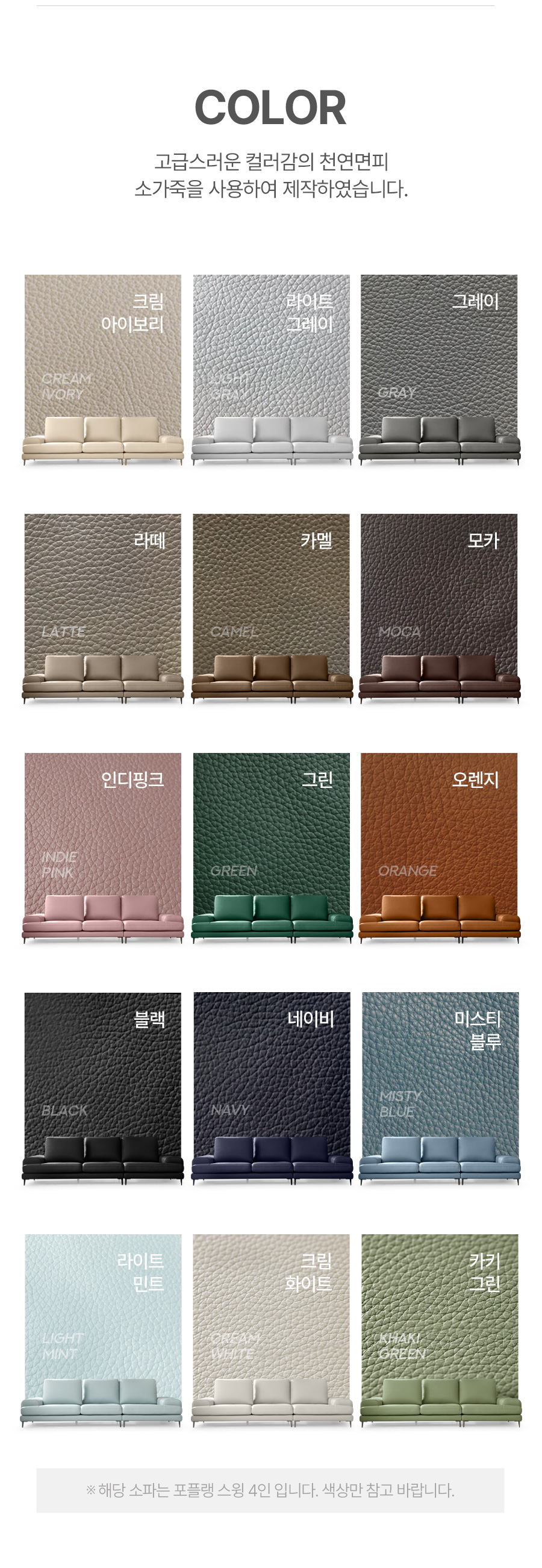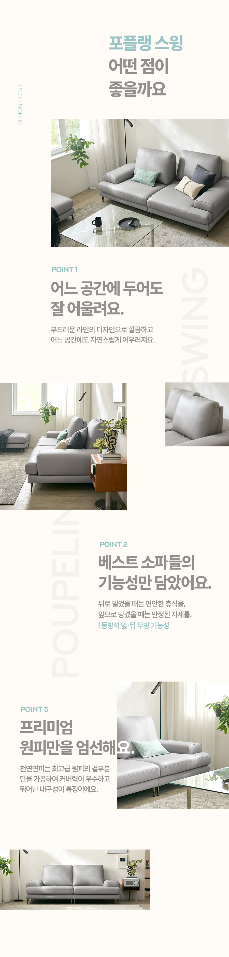 포플랭 스윙 3인 기능성 천연면피 소가죽 소파