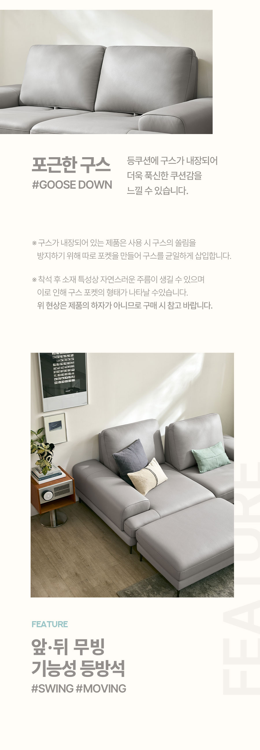 - 소파 등부위 상단부나 팔걸이 위에 올라서지 않도록 주의하여 주십시오. (제품손상의 원인)