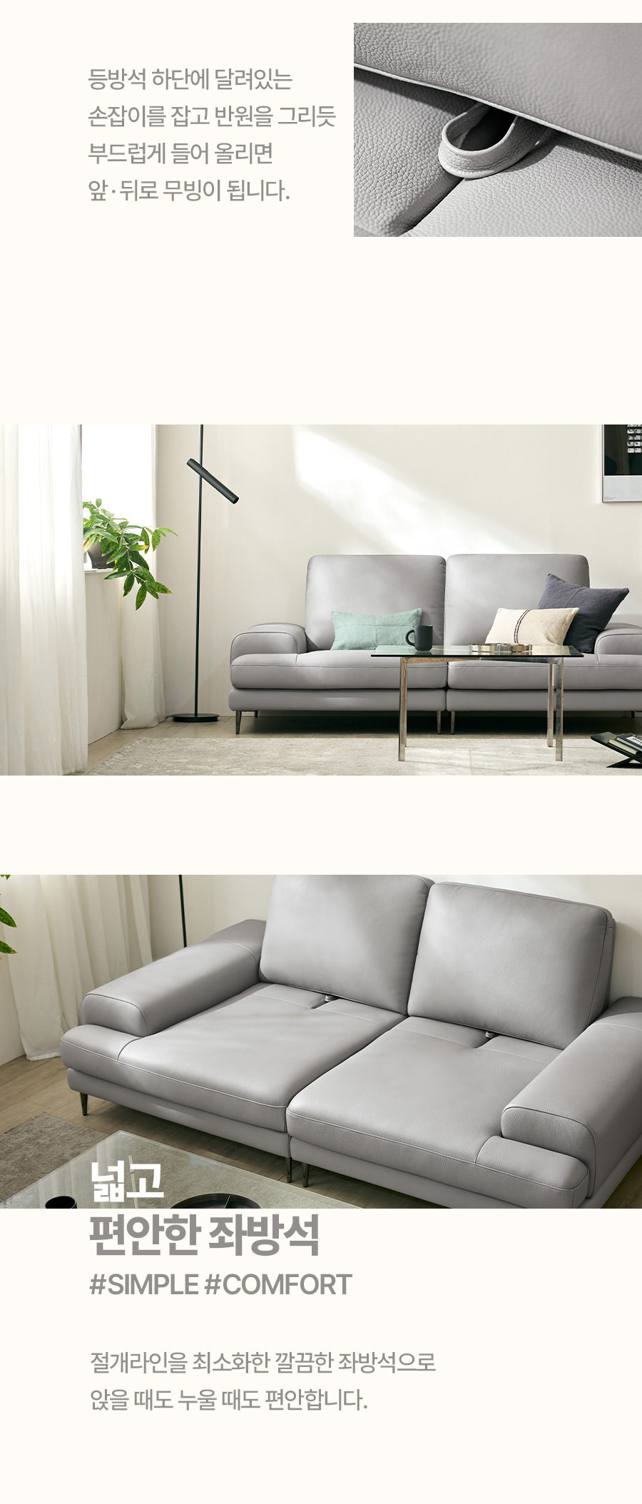 • [싱어게인 10%] 포플랭 스윙 3인 기능성 천연면피 소가죽 소파