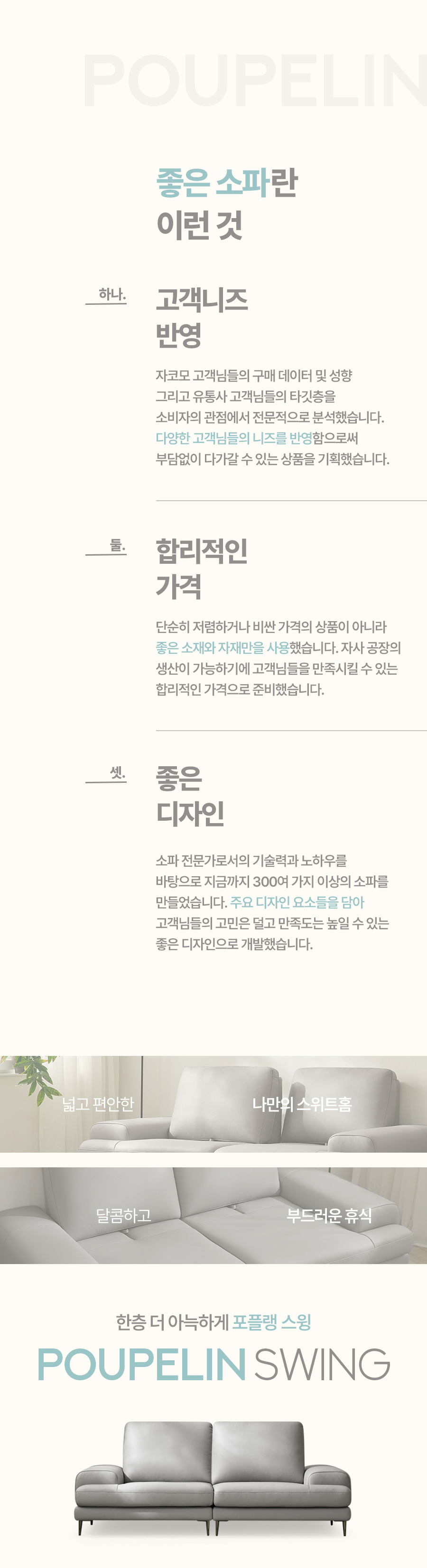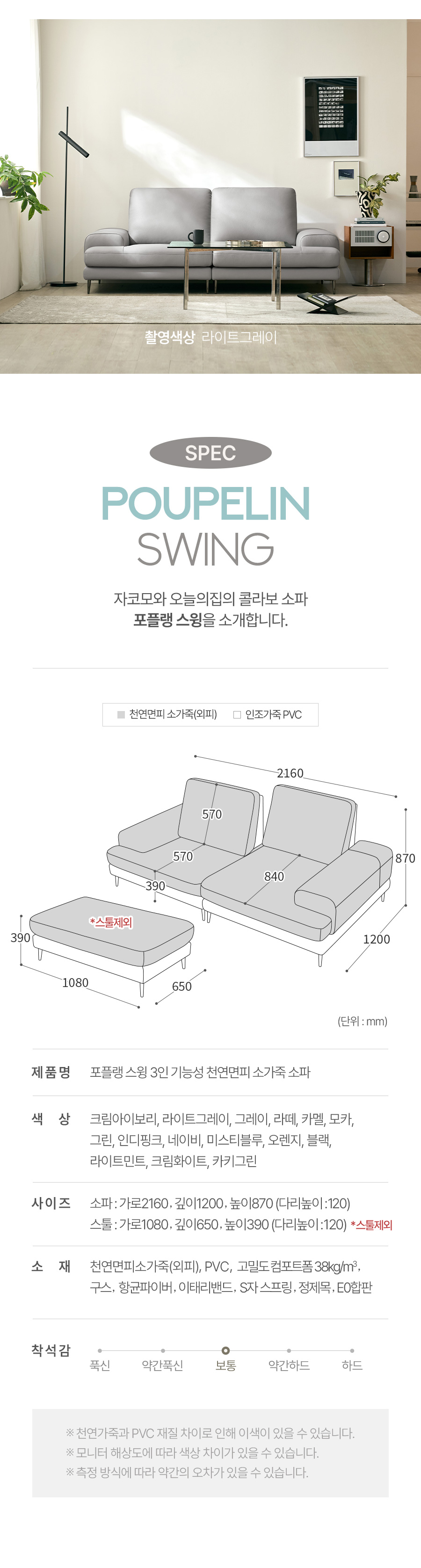 [싱어게인 10%] 포플랭 스윙 3인 기능성 천연면피 소가죽 소파