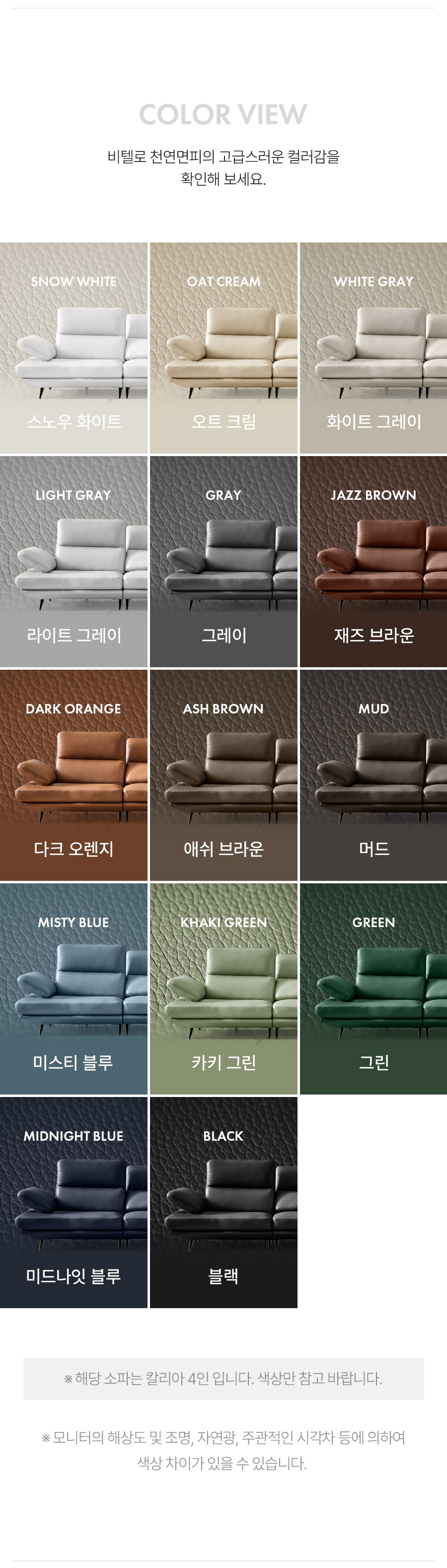 - 색상이나 카우치방향 등의 변경은 주문 후 2일 이내에 가능합니다.