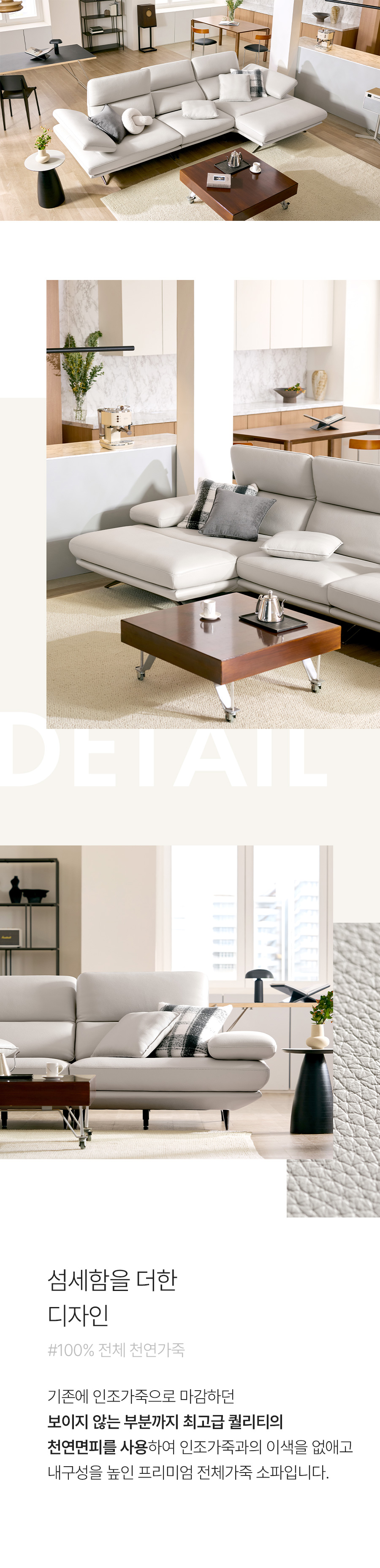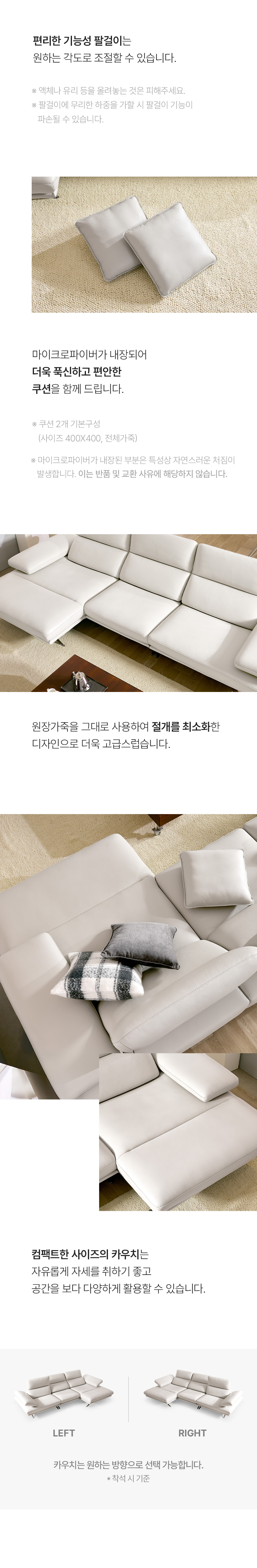 이미지 더보기칼리아 4인 카우치형 기능성 비텔로 통가죽 슈렁큰 천연면피 소가죽 소파(전체가죽적용)+쿠션2개