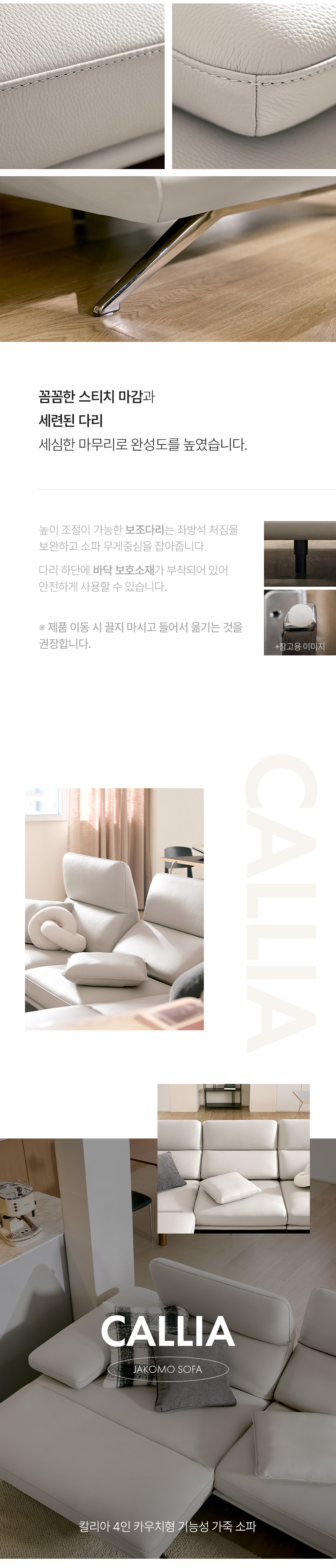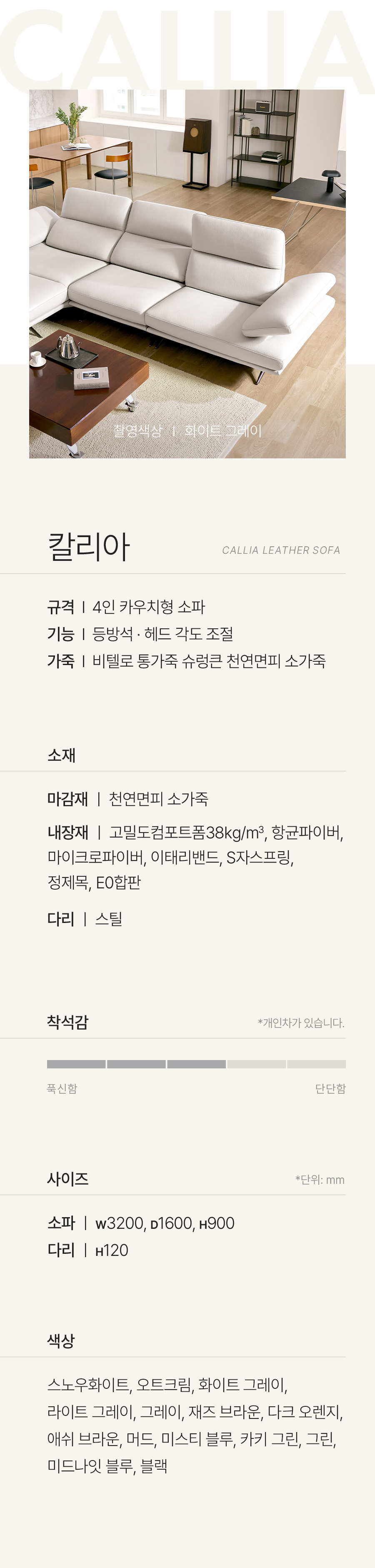• 칼리아 4인 카우치형 기능성 비텔로 통가죽 슈렁큰 천연면피 소가죽 소파(전체가죽적용)+쿠션2개