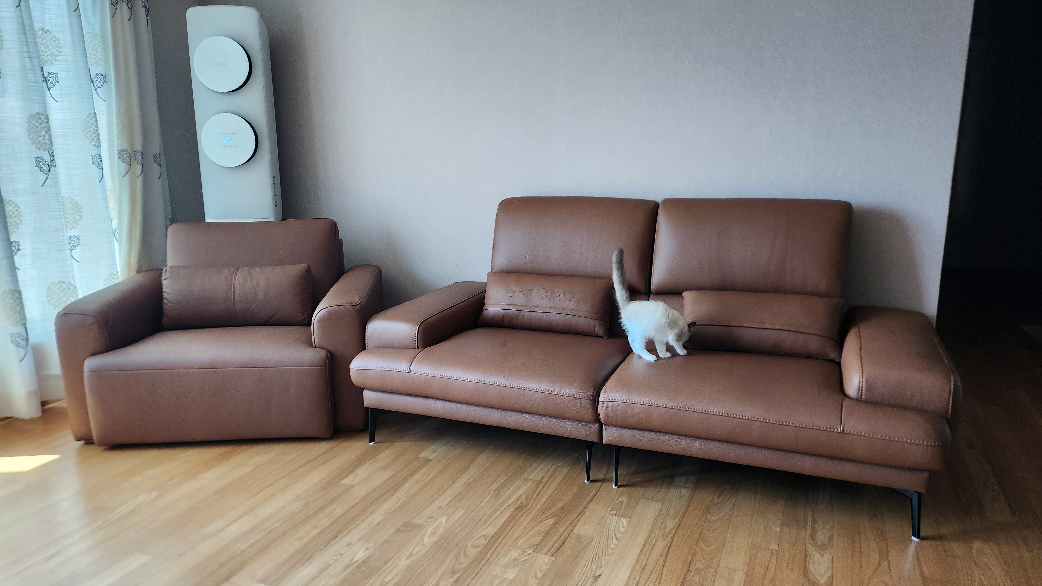 이미지 더보기토피 하이 3인 기능성 천연면피 소가죽 소파+쿠션2개