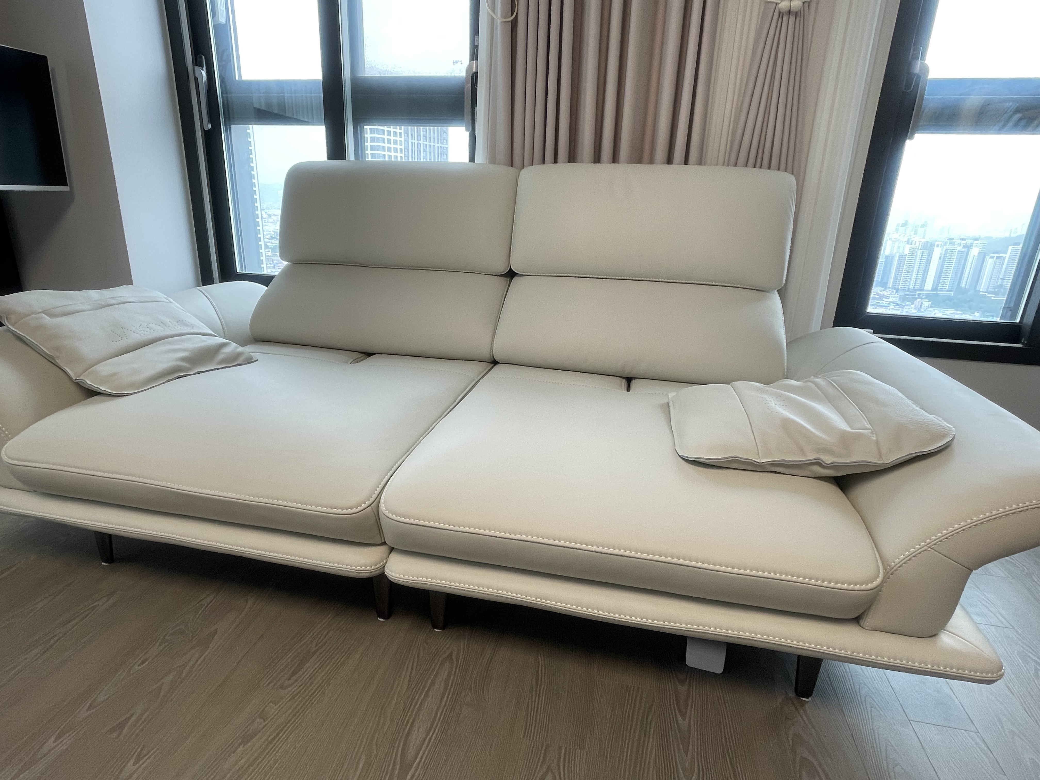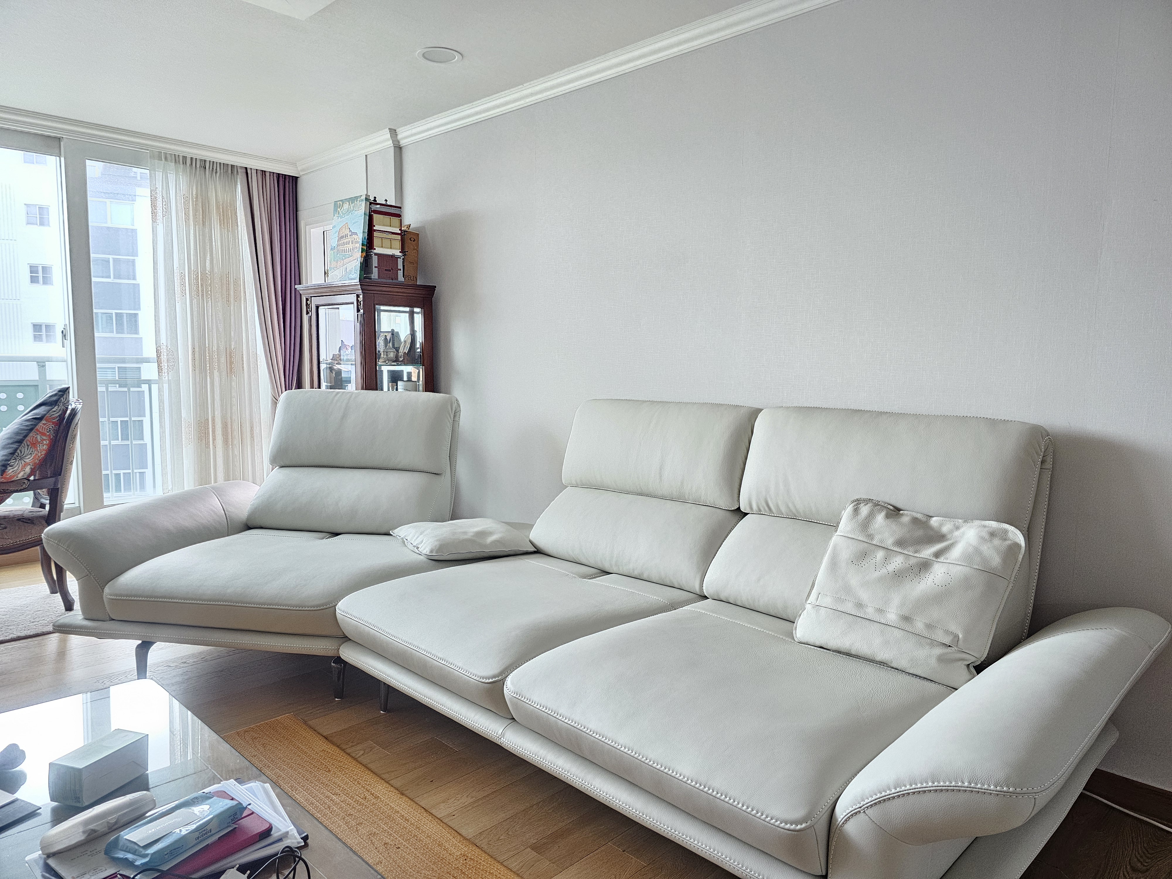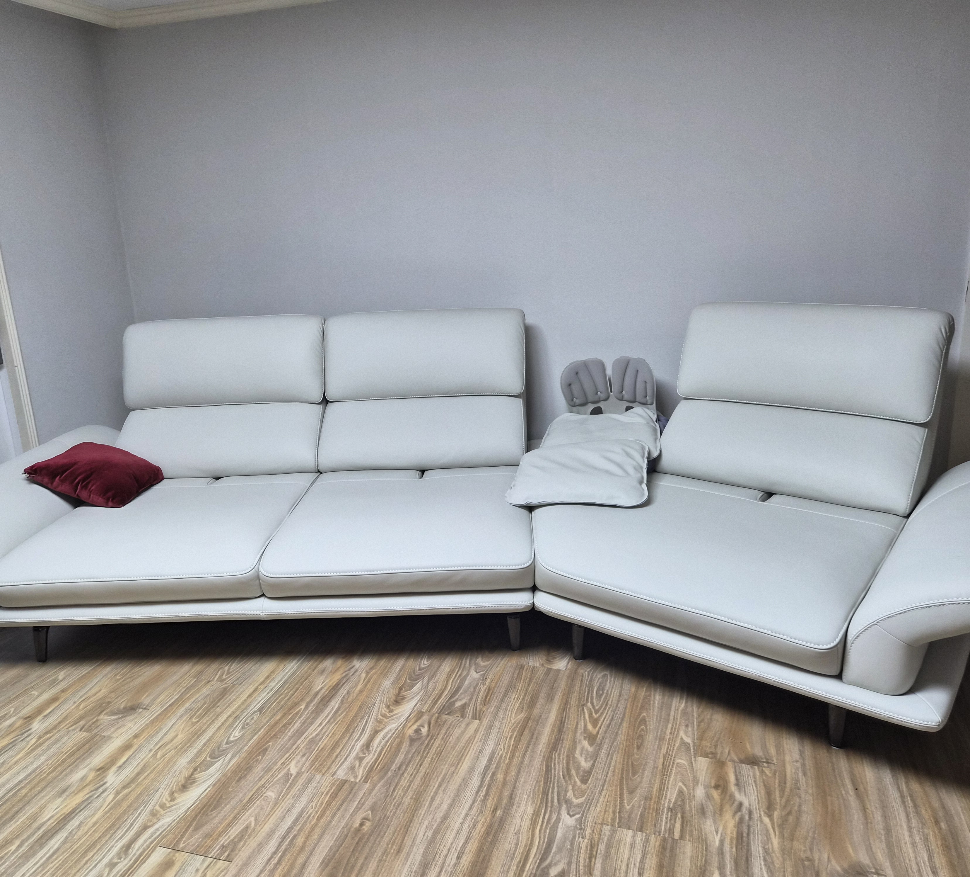 이미지 더보기아르노 4인 사선카우치형 기능성 소피체 이태리 내추럴 천연면피 소가죽 소파(전체가죽적용)+쿠션2개