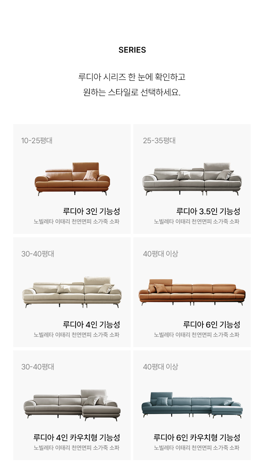 이미지 더보기루디아 3인 기능성 노빌레타 이태리 천연면피 소가죽 소파+쿠션1개