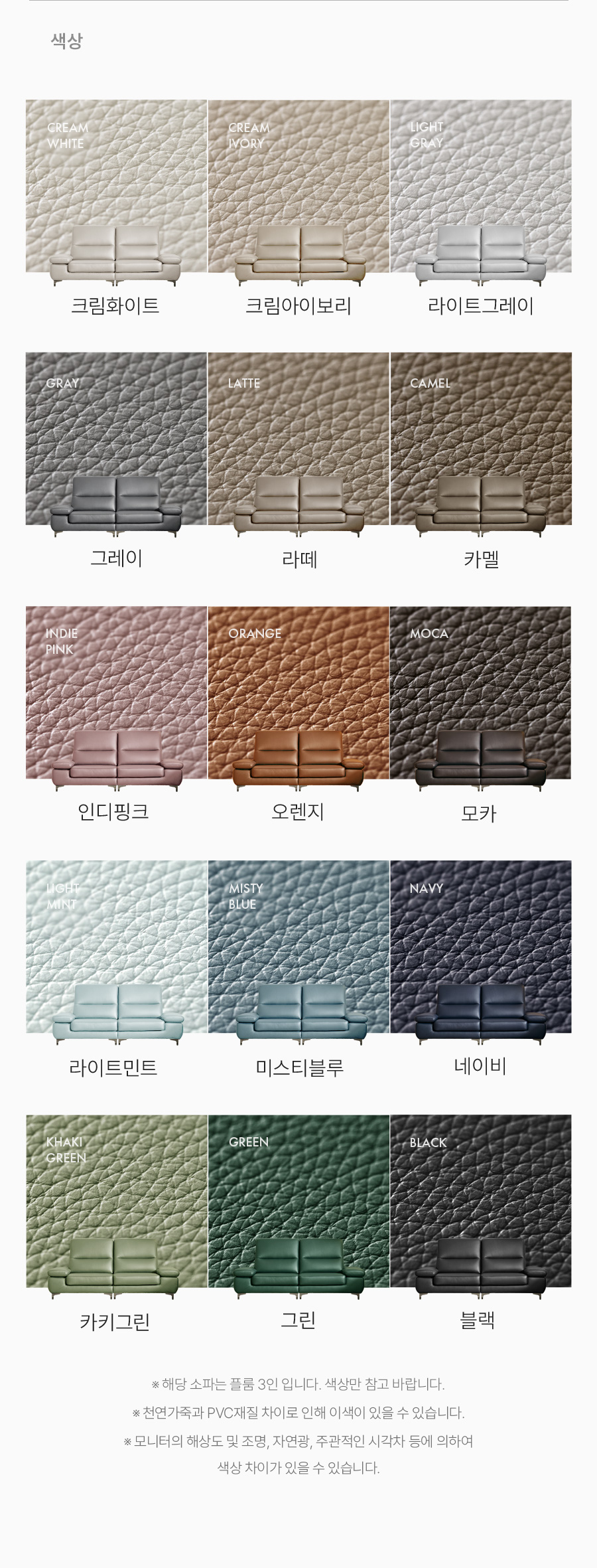 - 색상이나 카우치방향 등의 변경은 주문 후 2일 이내에 가능합니다.