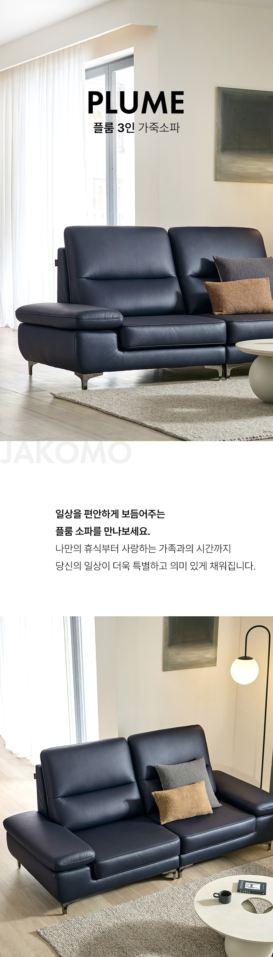[Monthly Best 10%] 플룸 3인 천연면피 소가죽 소파