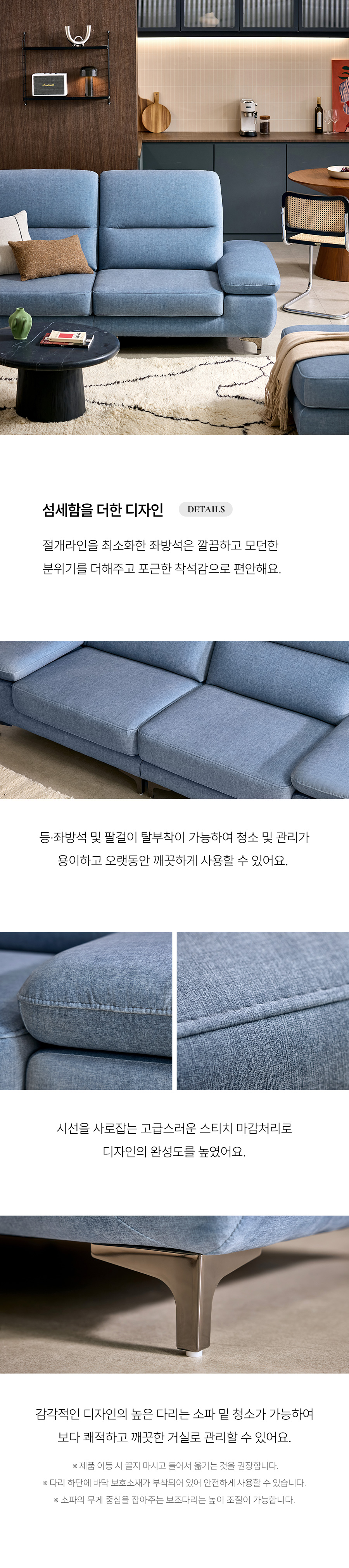 - 소파, 1인체어, 테이블 등의 기본배송료는 전국 무료배송 및 전문기사 방문 설치 (일부 상품 제외)