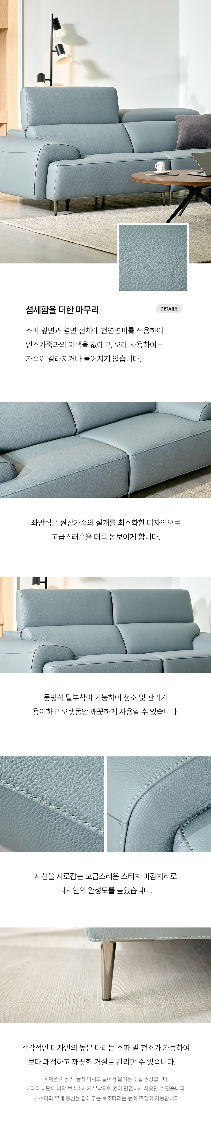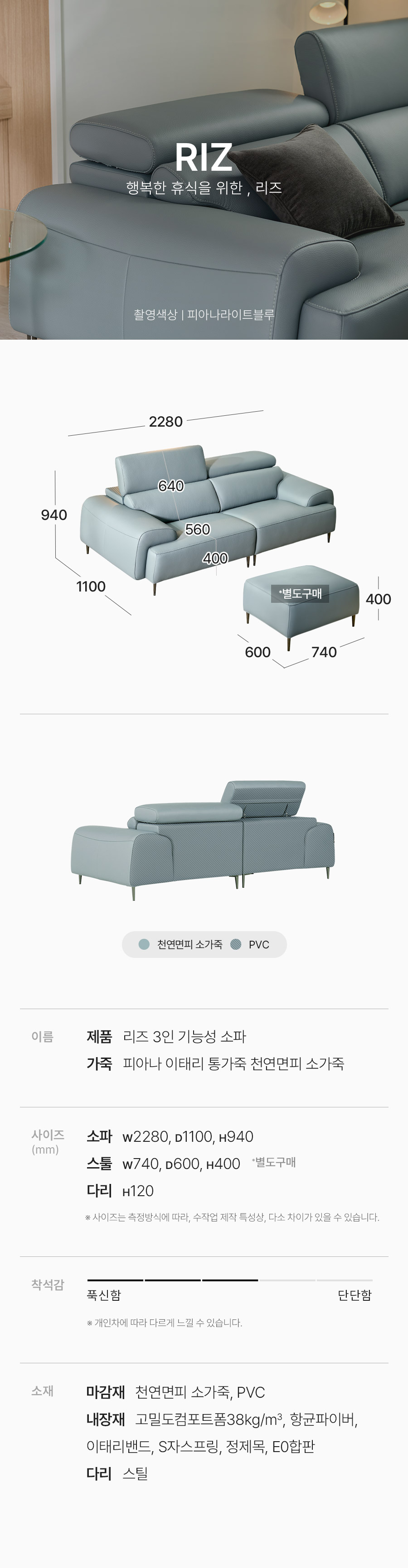 • 리즈 3인 기능성 피아나 이태리 통가죽 천연면피 소가죽 소파(전측면가죽적용)