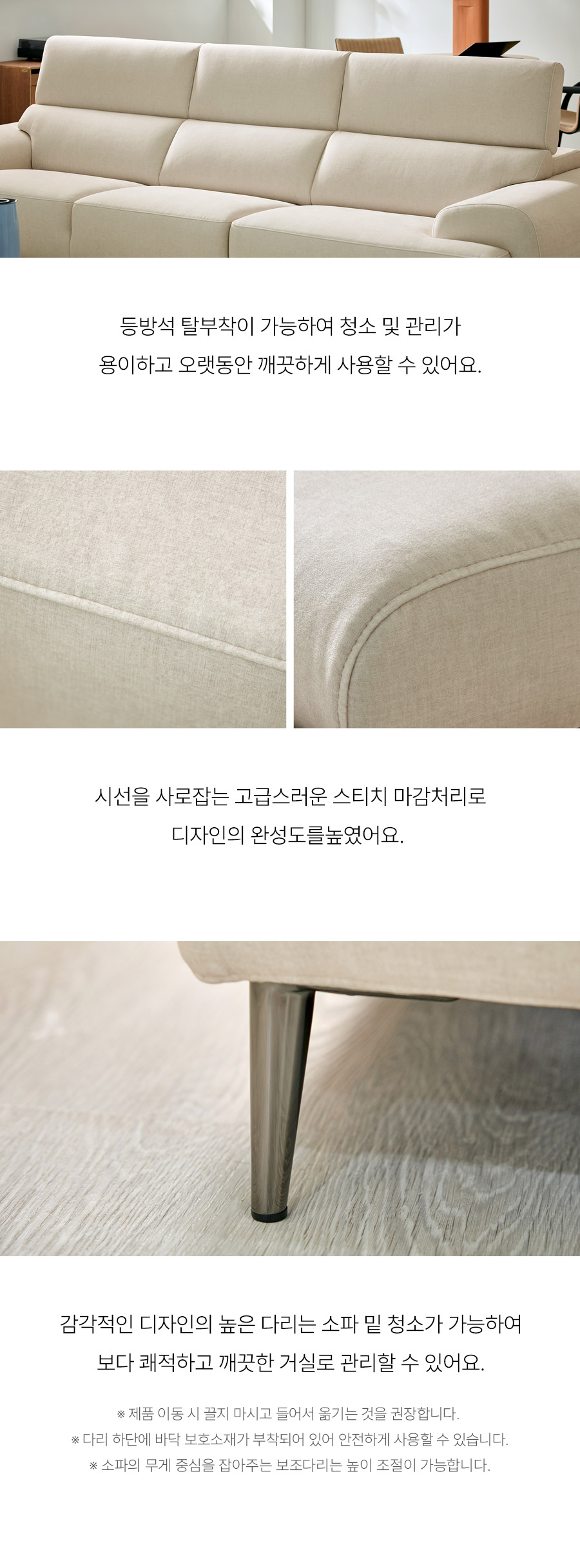 - 소파 등부위 상단부나 팔걸이 위에 올라서지 않도록 주의하여 주십시오. (제품손상의 원인)
