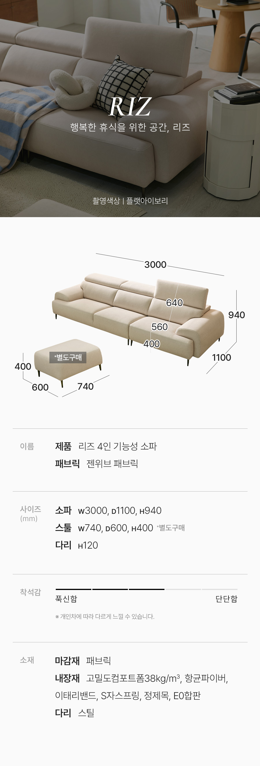이미지 더보기리즈 4인 기능성 젠위브 패브릭 소파