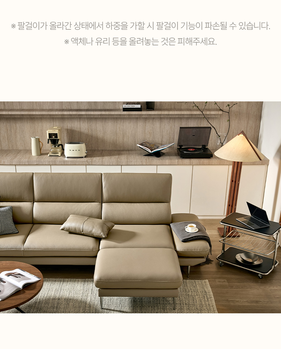- 소파 등부위 상단부나 팔걸이 위에 올라서지 않도록 주의하여 주십시오. (제품손상의 원인)