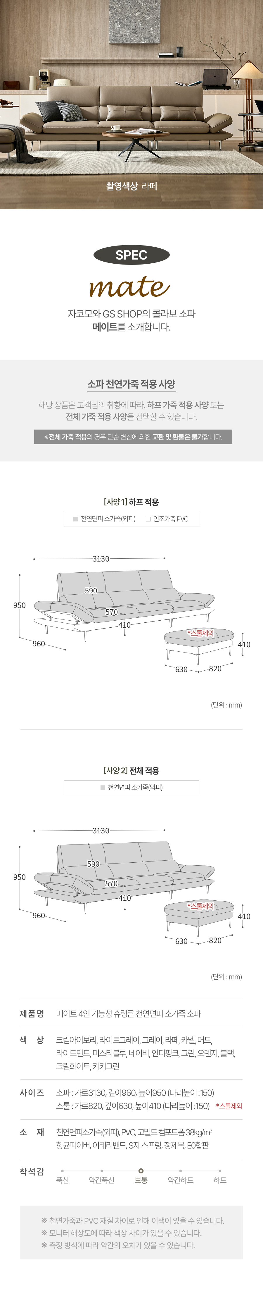이미지 더보기메이트 4인 기능성 슈렁큰 천연면피 소가죽 소파+쿠션2개
