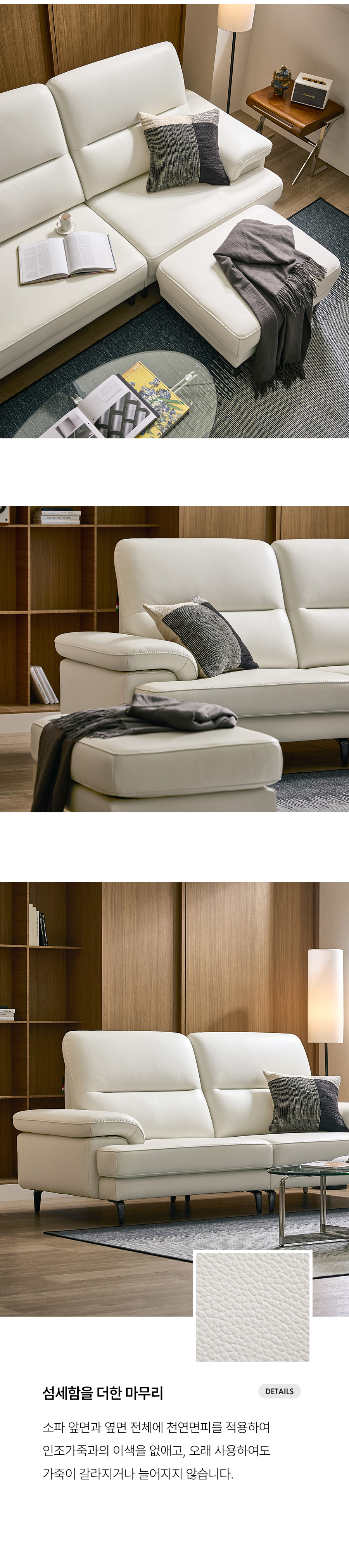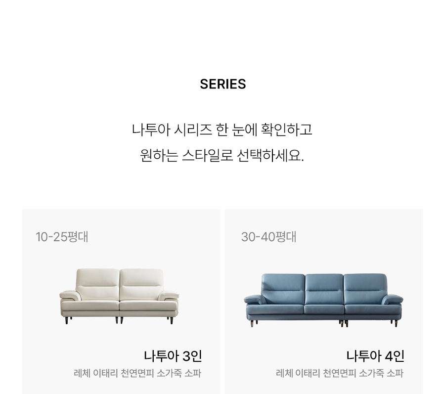 이미지 더보기나투아 3인 레체 이태리 천연면피 소가죽 소파(전측면가죽적용)