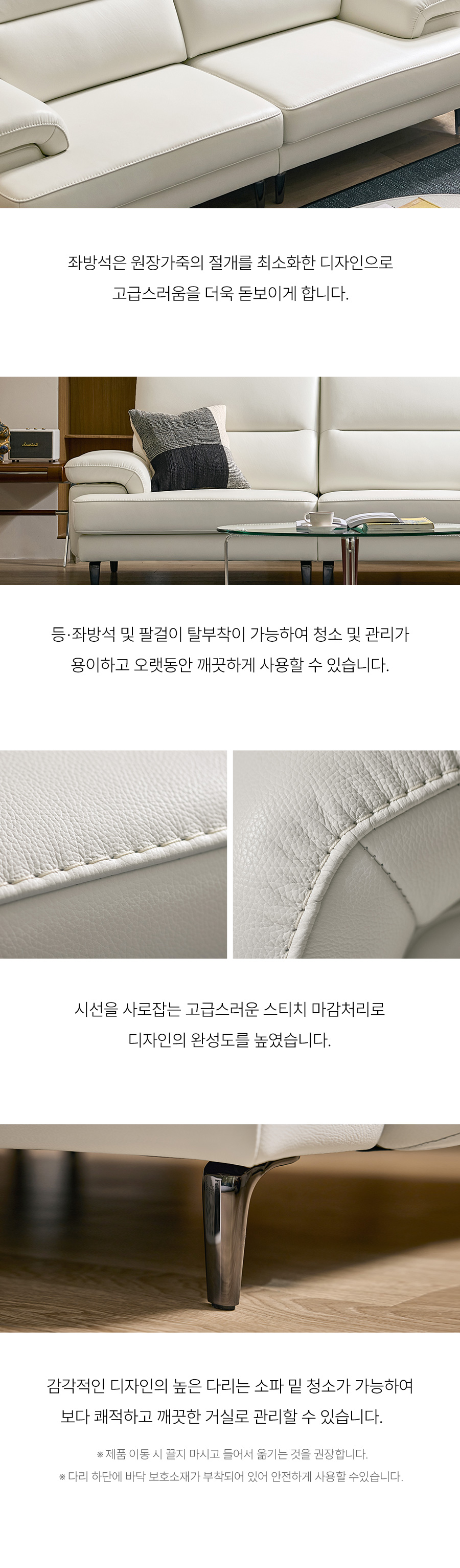 - 소파 등부위 상단부나 팔걸이 위에 올라서지 않도록 주의하여 주십시오. (제품손상의 원인)