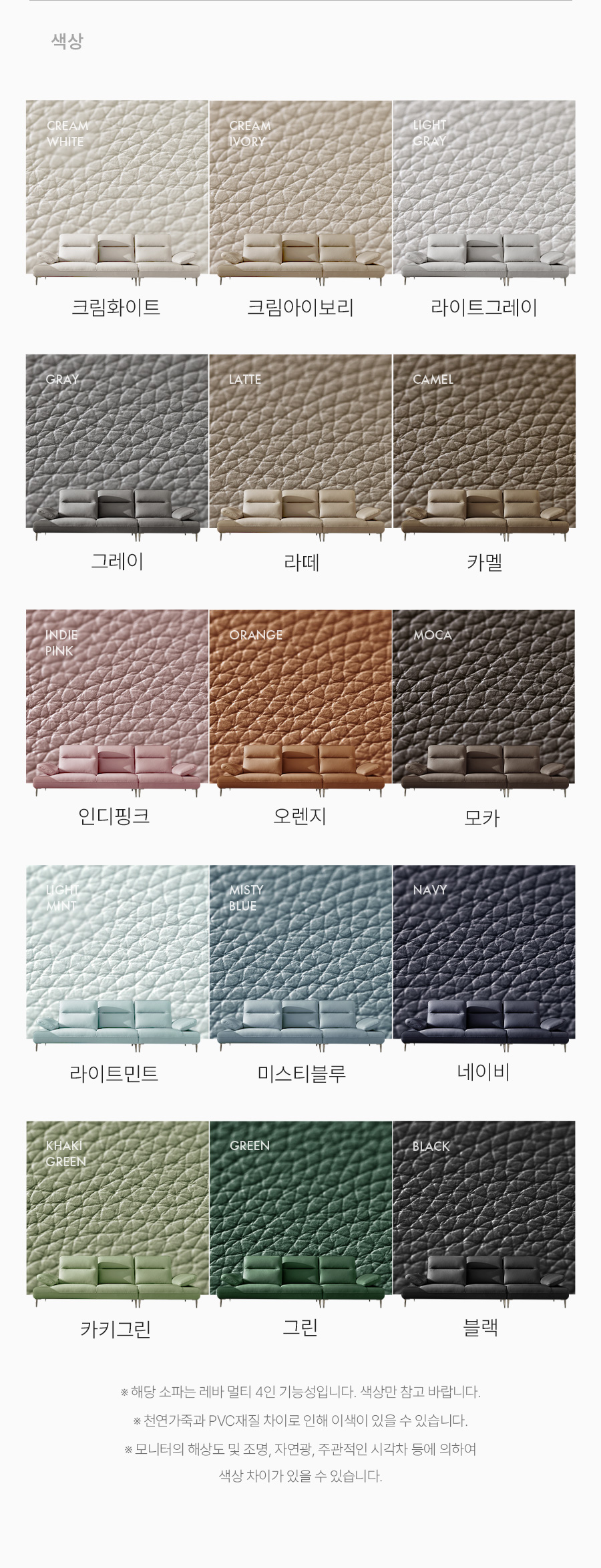 - 색상이나 카우치방향 등의 변경은 주문 후 2일 이내에 가능합니다.