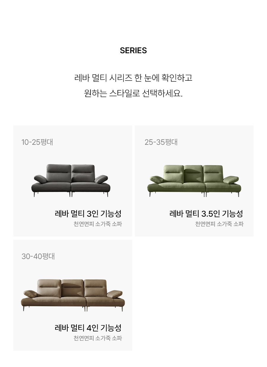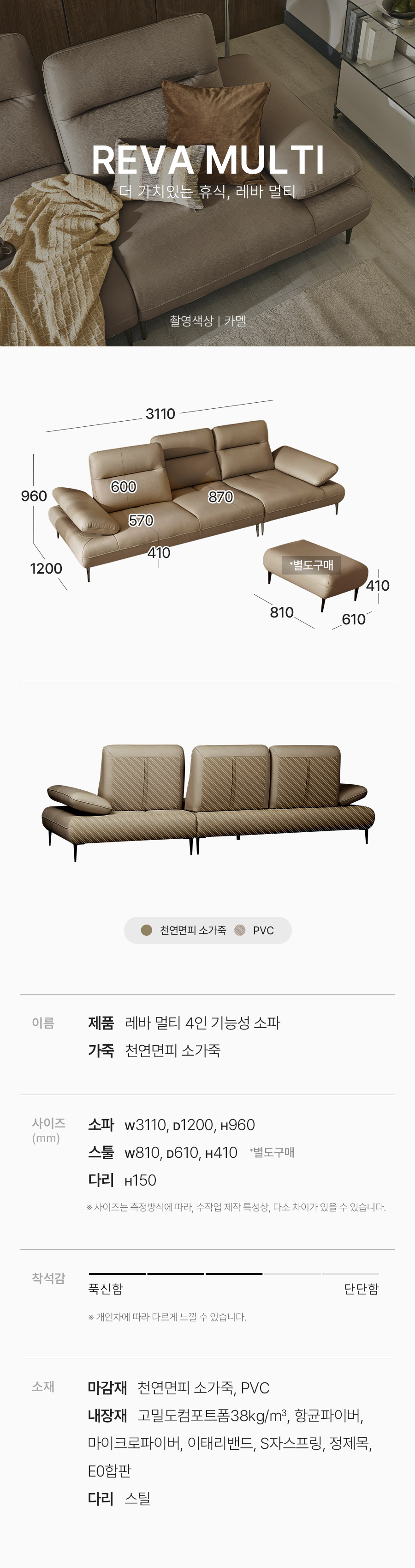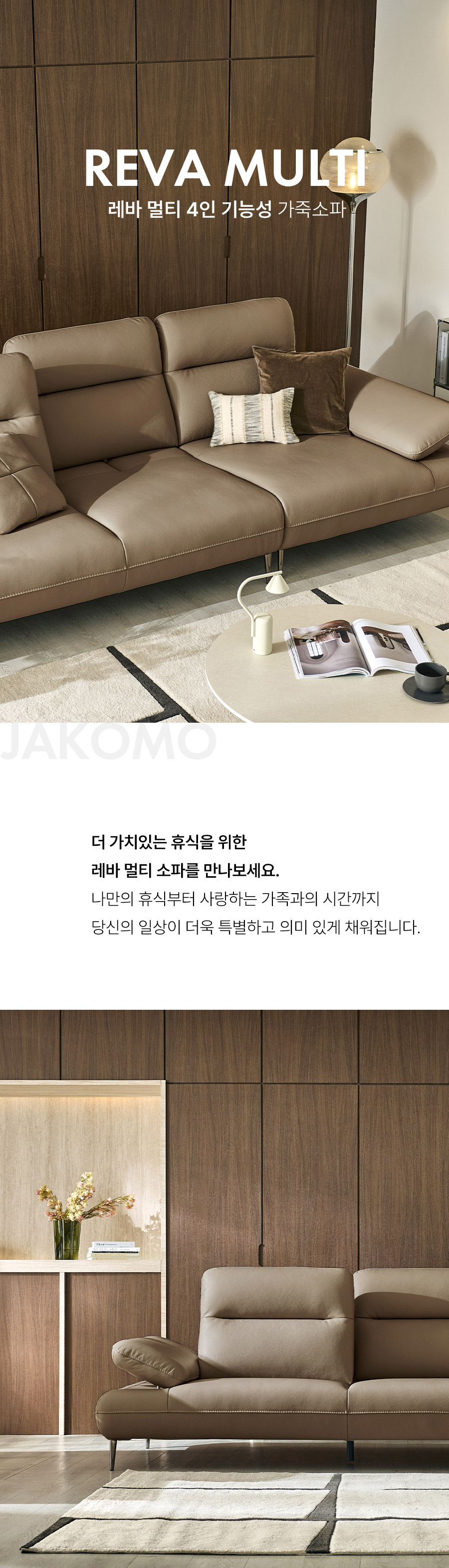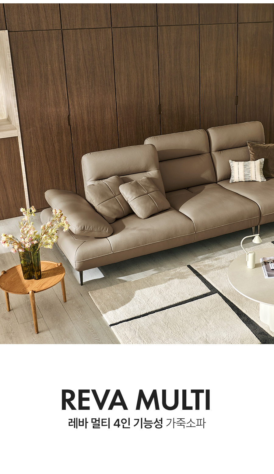 레바 멀티 4인 기능성 천연면피 소가죽 소파(전측면가죽적용)+쿠션2개