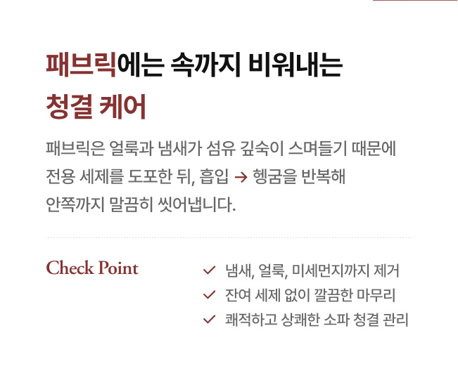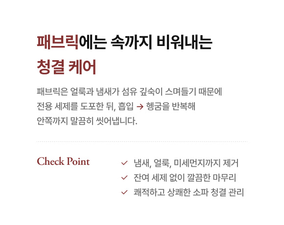 | 패브릭 건식 케어 | 패브릭 습식 케어 | |