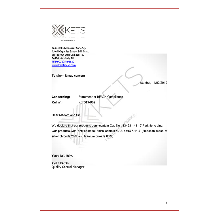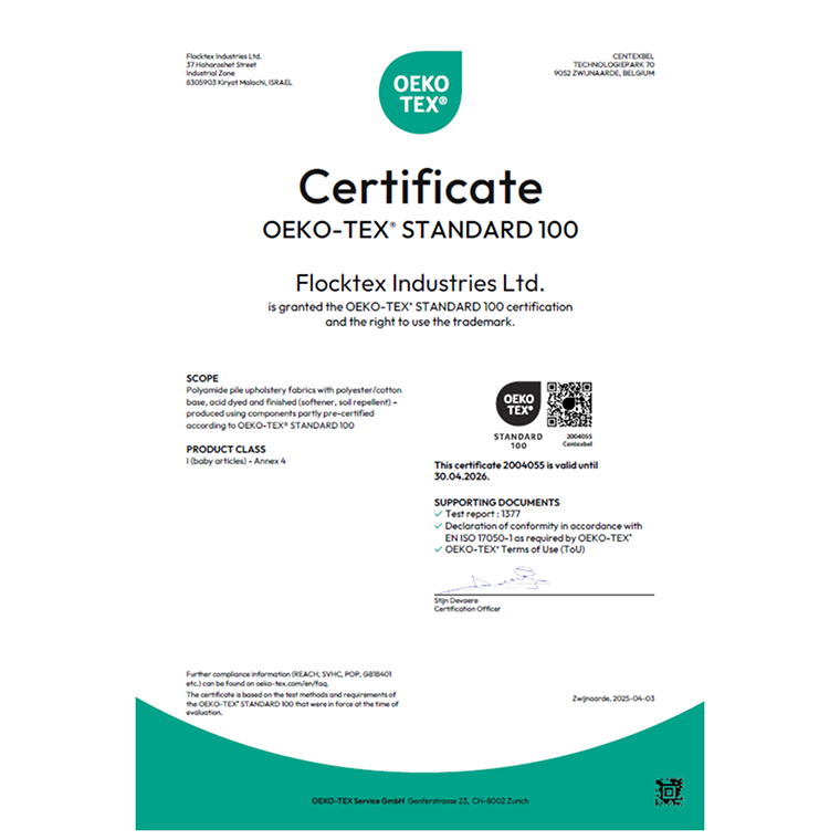 유럽연합의 엄격한 REACH 기준 준수 피부 자극, 호흡기 유해, 발암 가능성이 있는 물질을 배제해 인체와 환경에 안전한 소재 인증