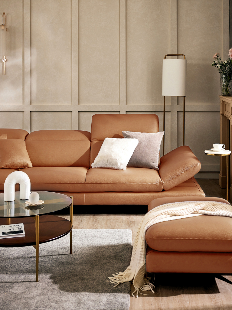 에디아르 4인 카우치형 기능성 소가죽 소파