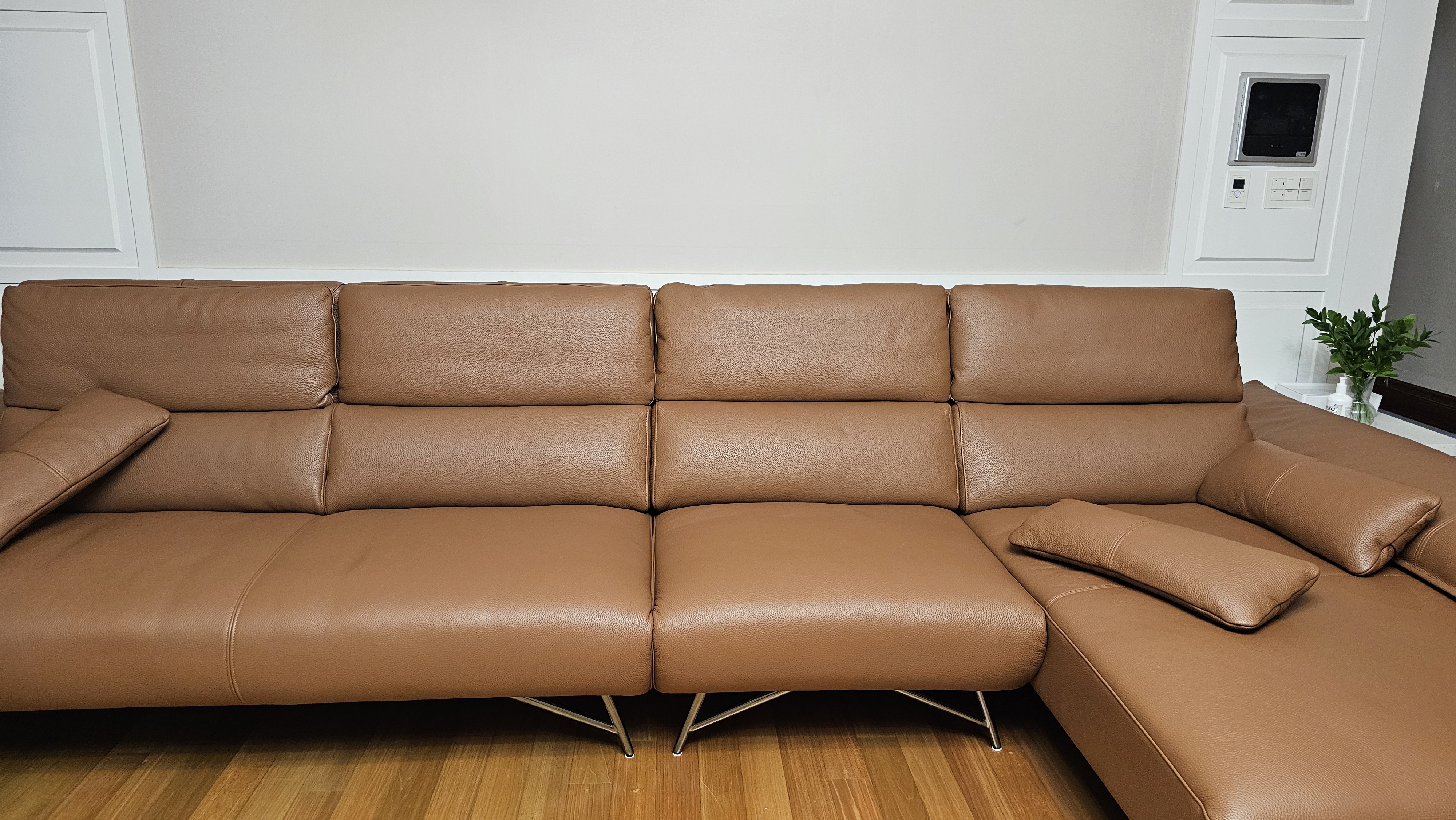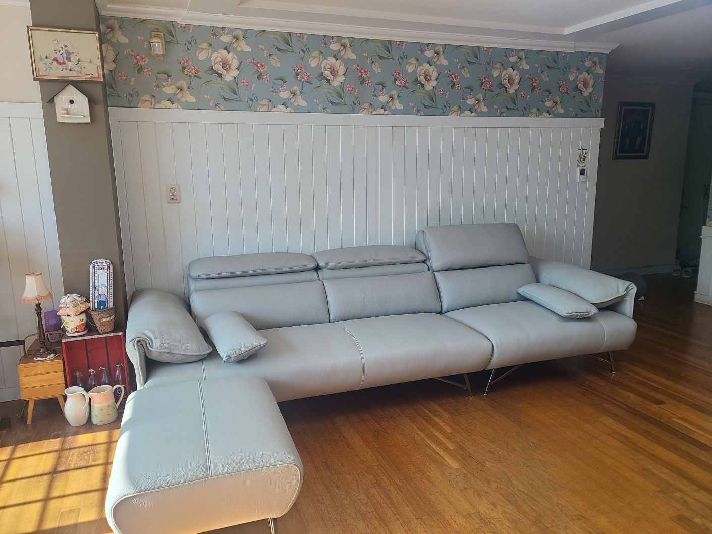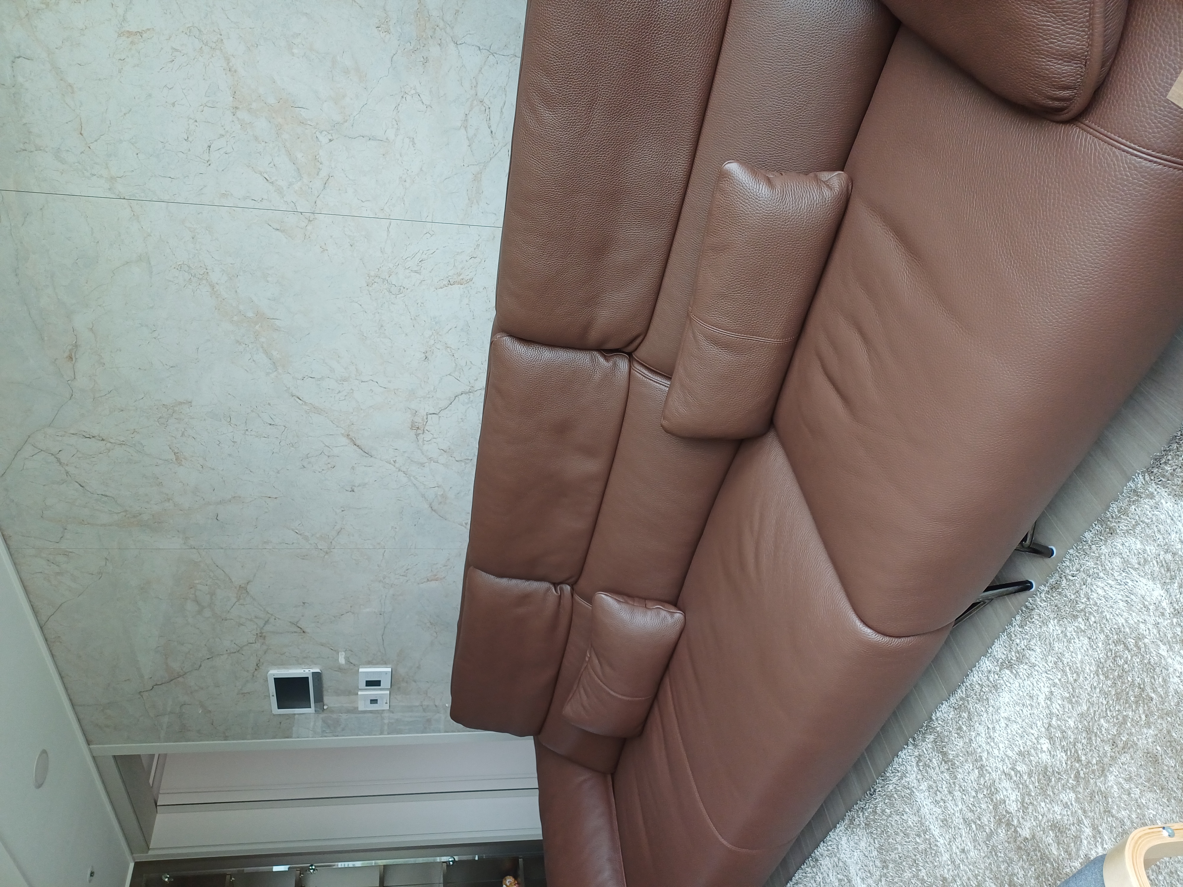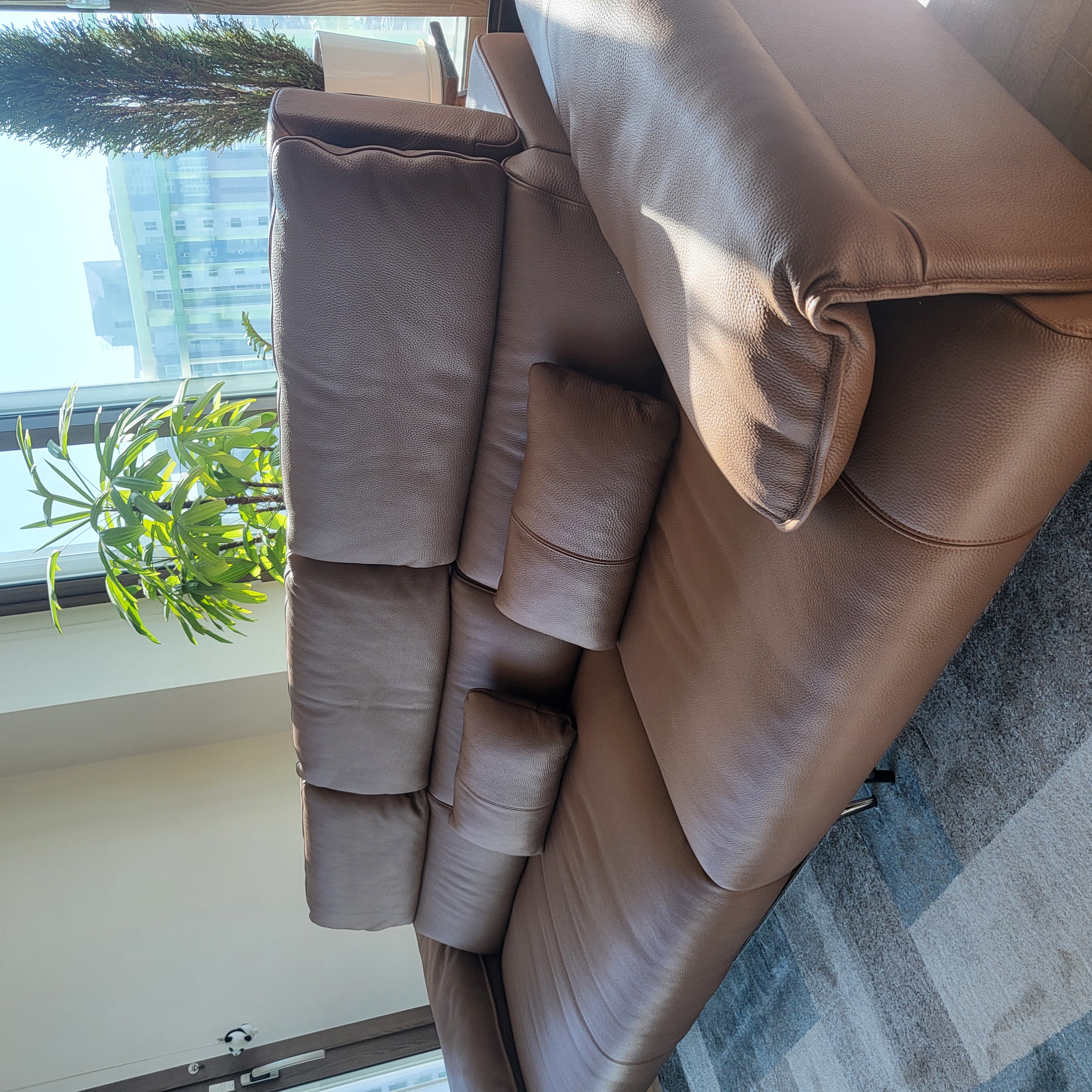이미지 더보기쎄턴 4인 와이드 카우치형 기능성 비텔로 통가죽 슈렁큰 천연면피 소가죽 소파(전면가죽적용)+쿠션2개