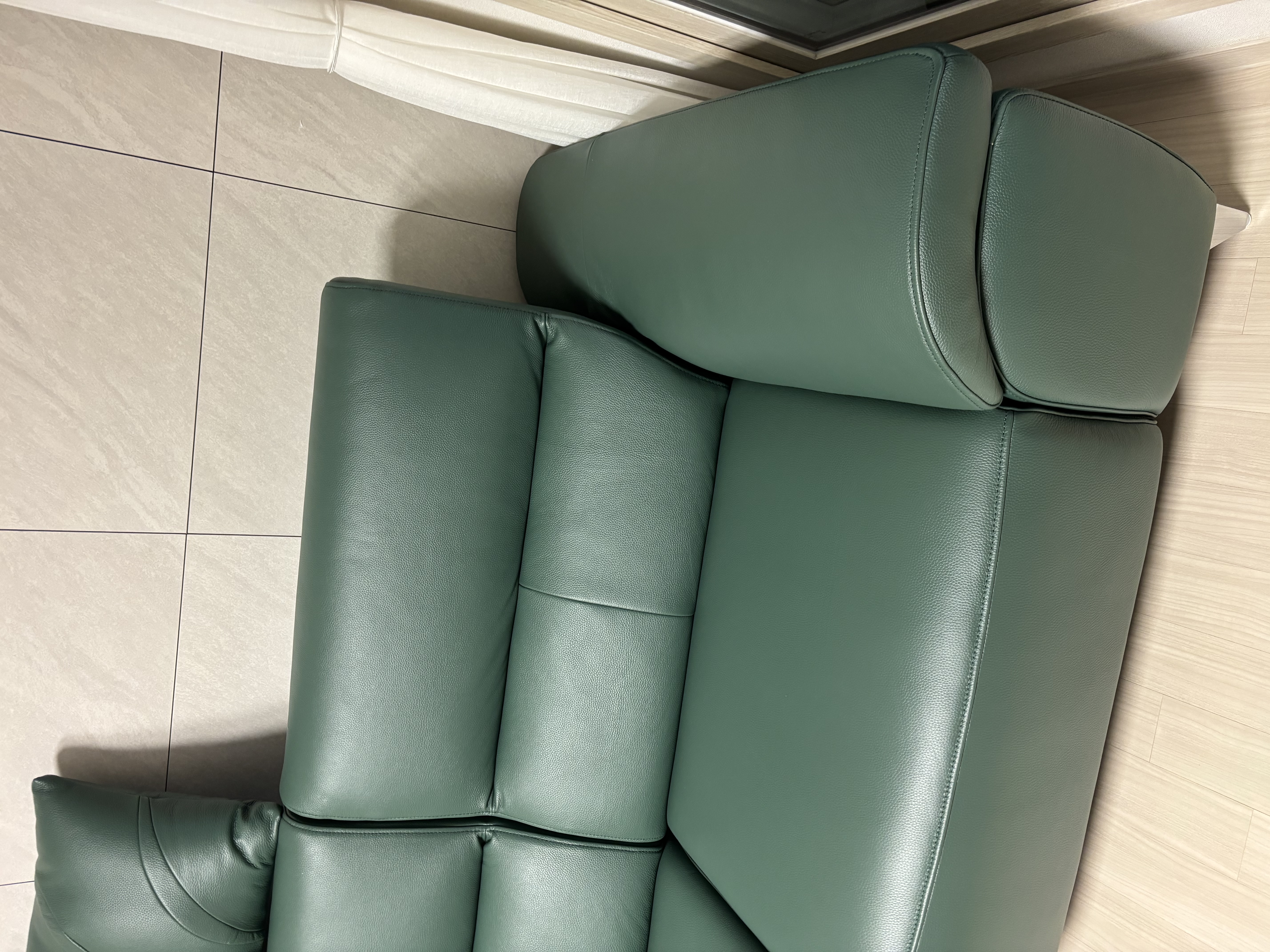 이미지 더보기솔리드 리클라이너 4인 슈렁큰 천연면피 소가죽 소파(전면가죽적용)