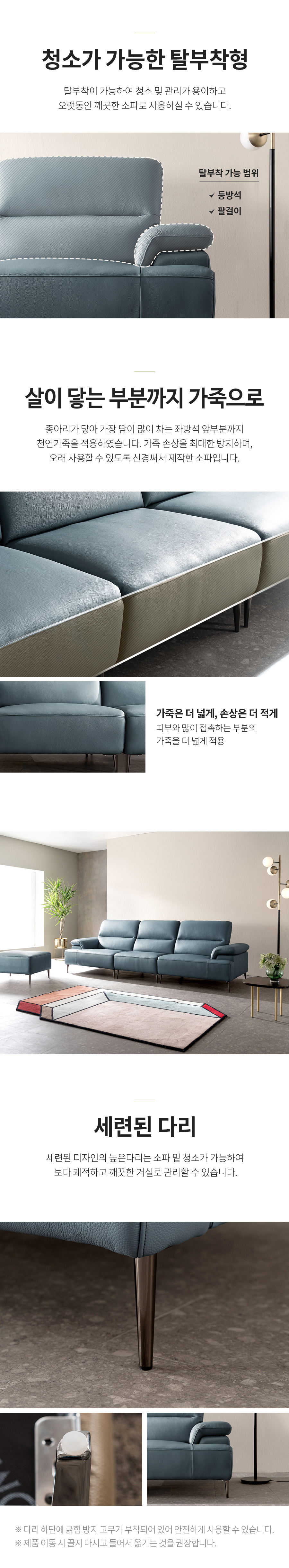 - 소파 등부위 상단부나 팔걸이 위에 올라서지 않도록 주의하여 주십시오. (제품손상의 원인)