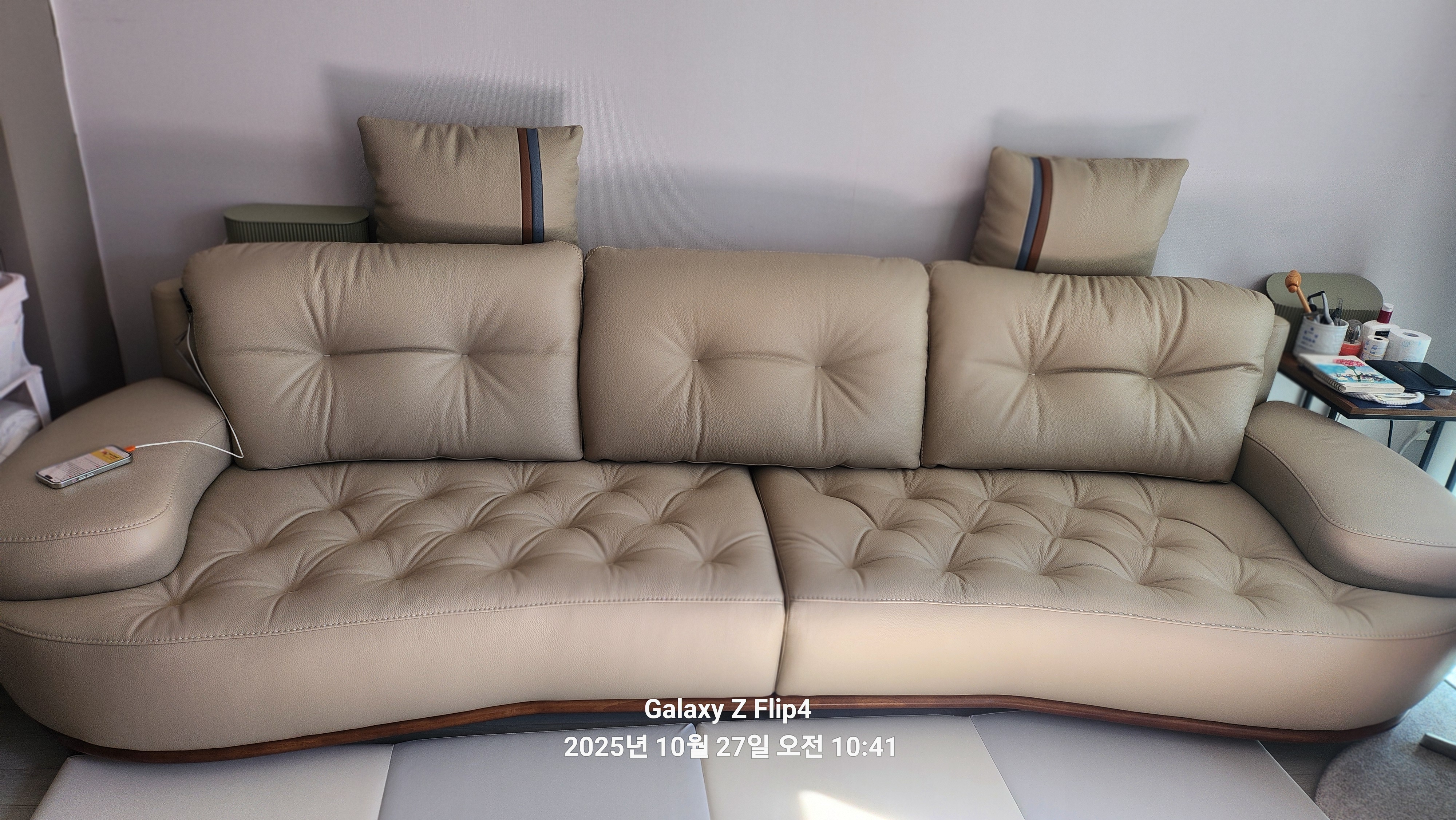 이미지 더보기너트 4인 슈렁큰 천연면피 소가죽 소파(전체가죽적용)+쿠션2개
