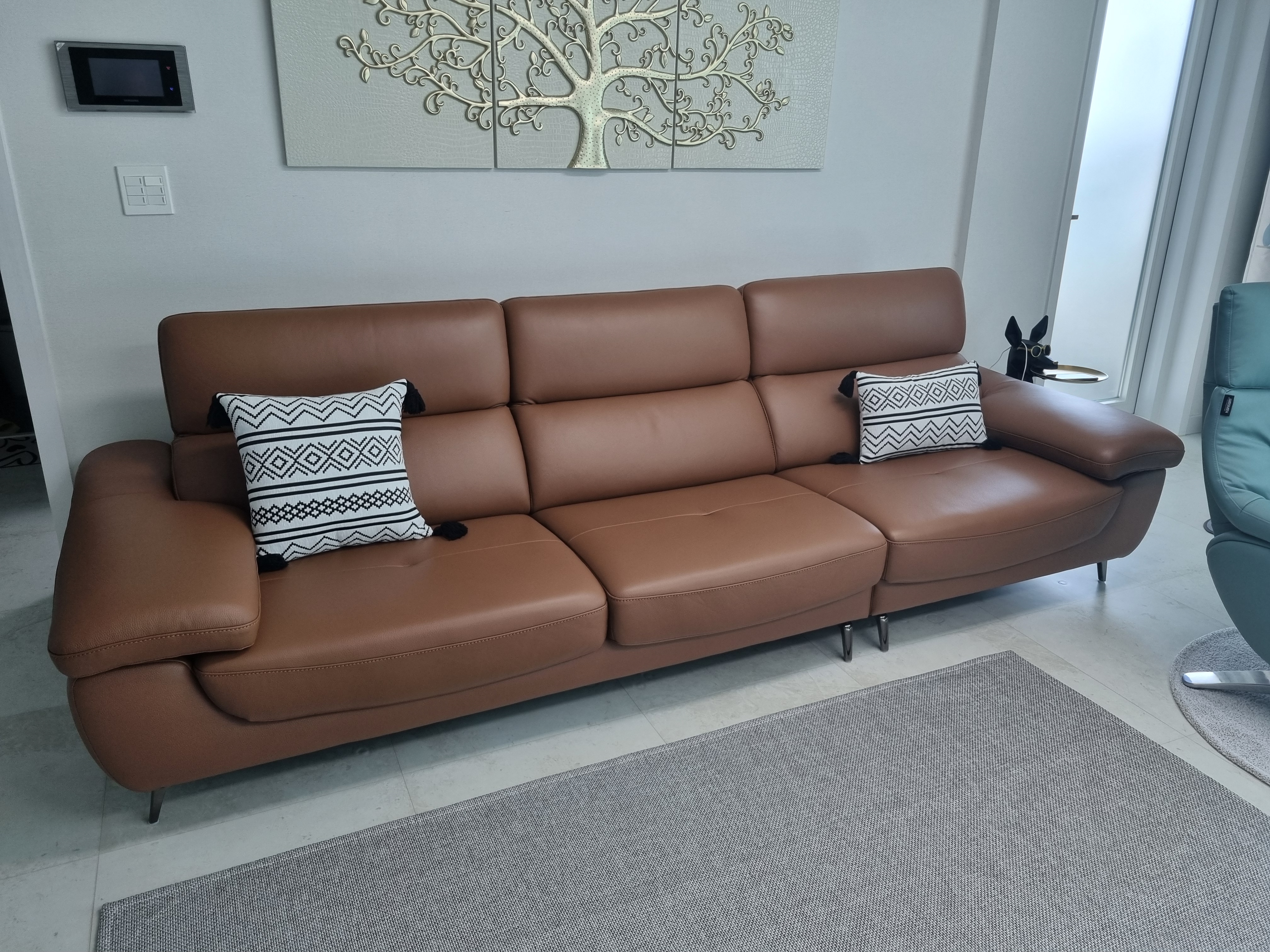 르네 4인 기능성 슈렁큰 천연면피 소가죽 소파