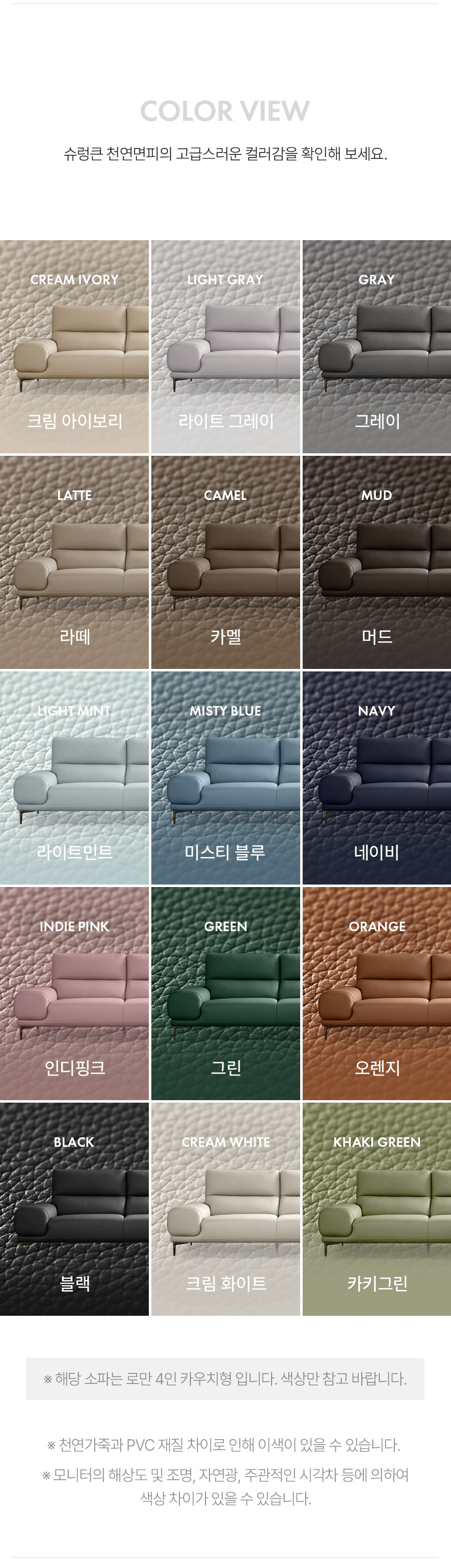 - 색상이나 카우치방향 등의 변경은 주문 후 2일 이내에 가능합니다.