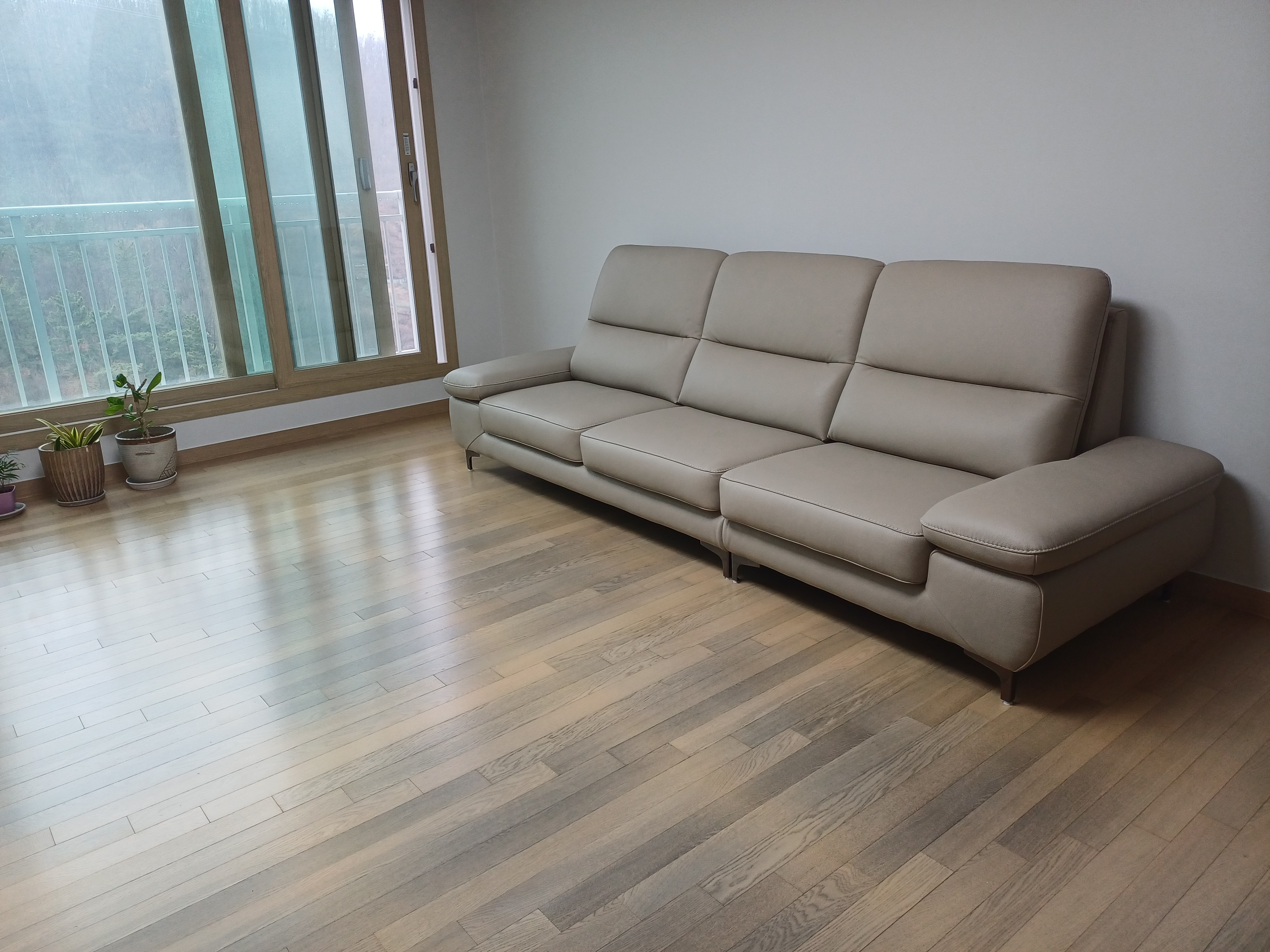 플룸 4인 천연면피 소가죽 소파