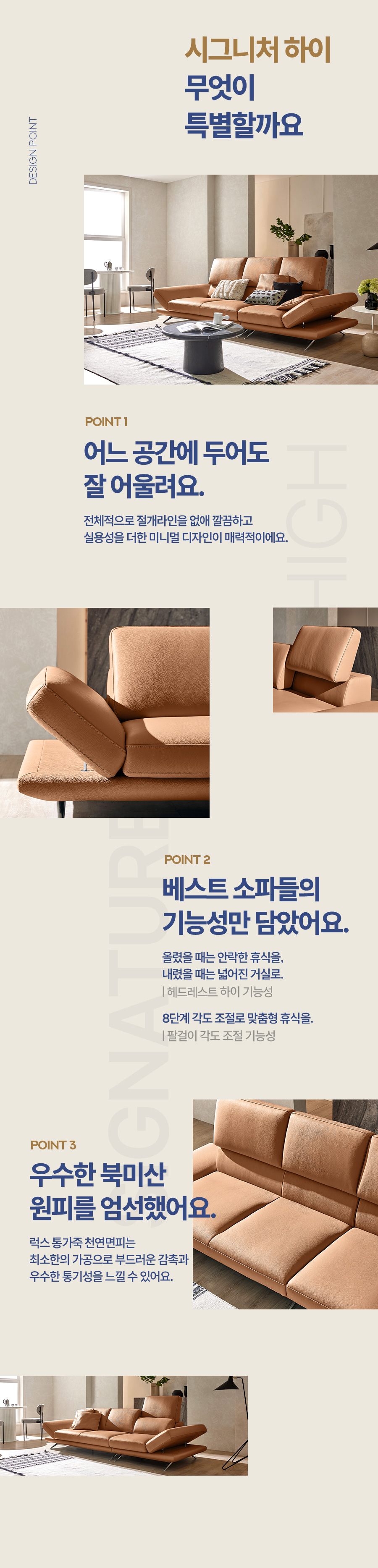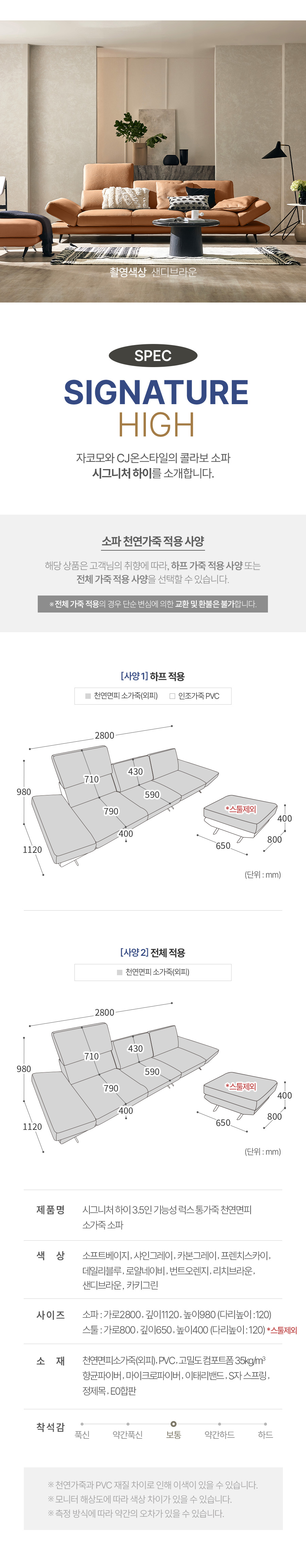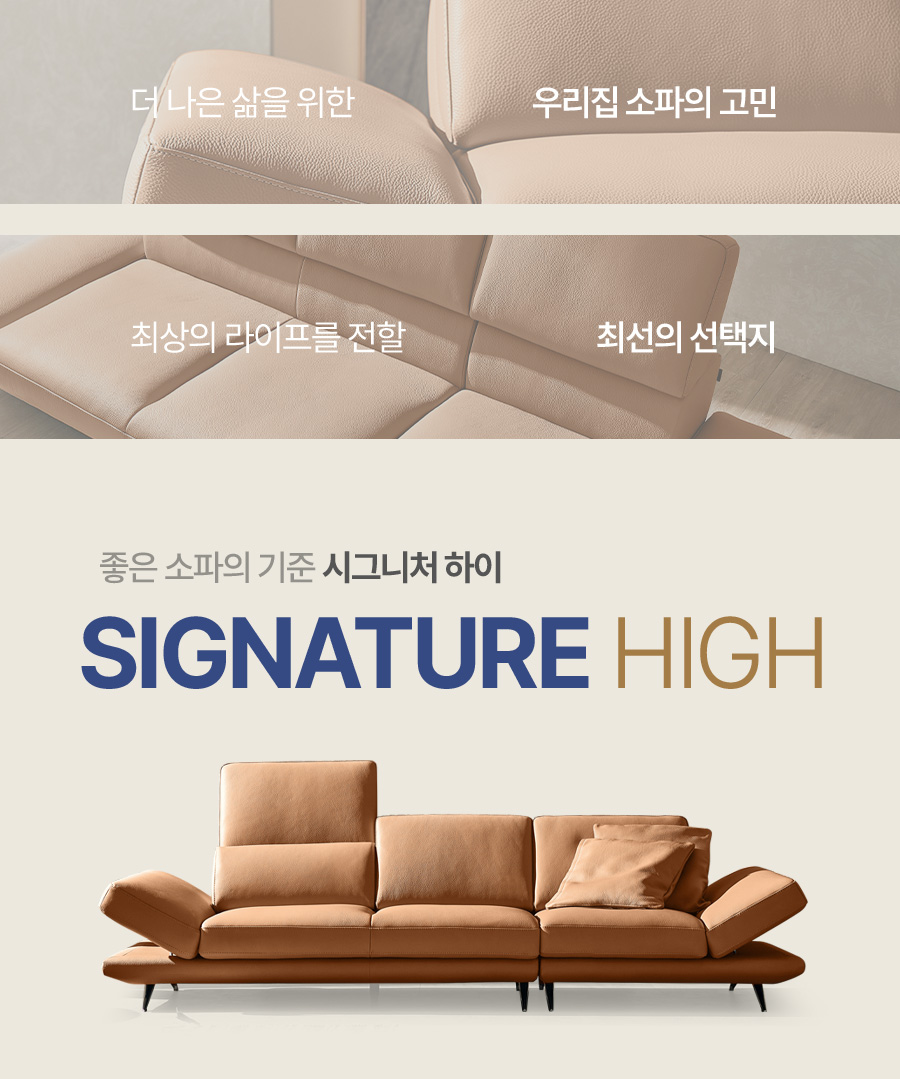 시그니처 하이 3.5인 기능성 럭스 통가죽 천연면피 소가죽 소파+쿠션4개(허리2개/소2개)
